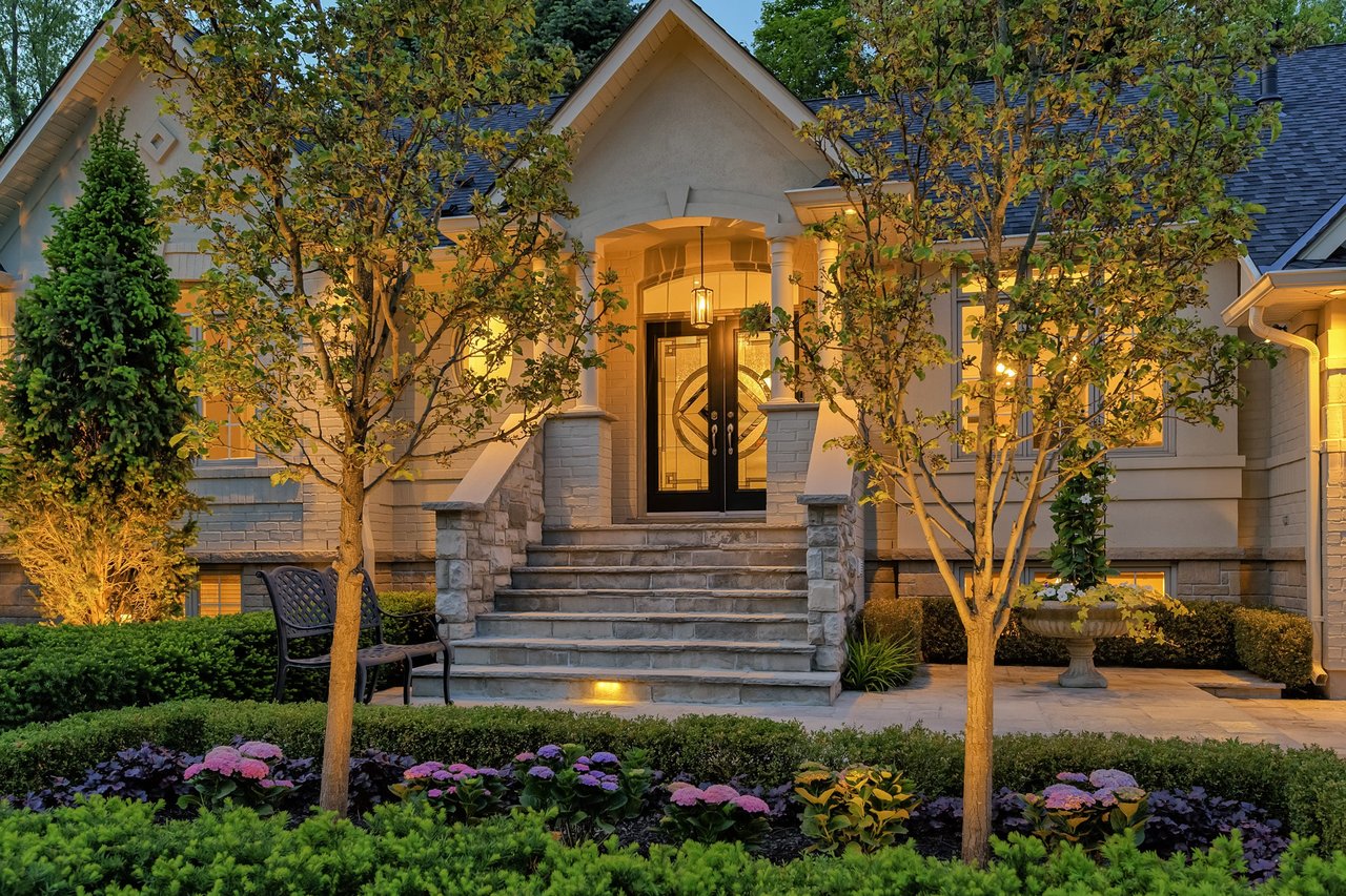 Set back on a quiet court surrounded by lush nature sits this inviting raised ranch-style bungalow. Framed with a mature tree canopy and beautiful perennial gardens dense with evergreen shrubs and natural stone that together create a serene and welcoming first impression. Flat flagstone carries to the front portico with stately double door entrance.