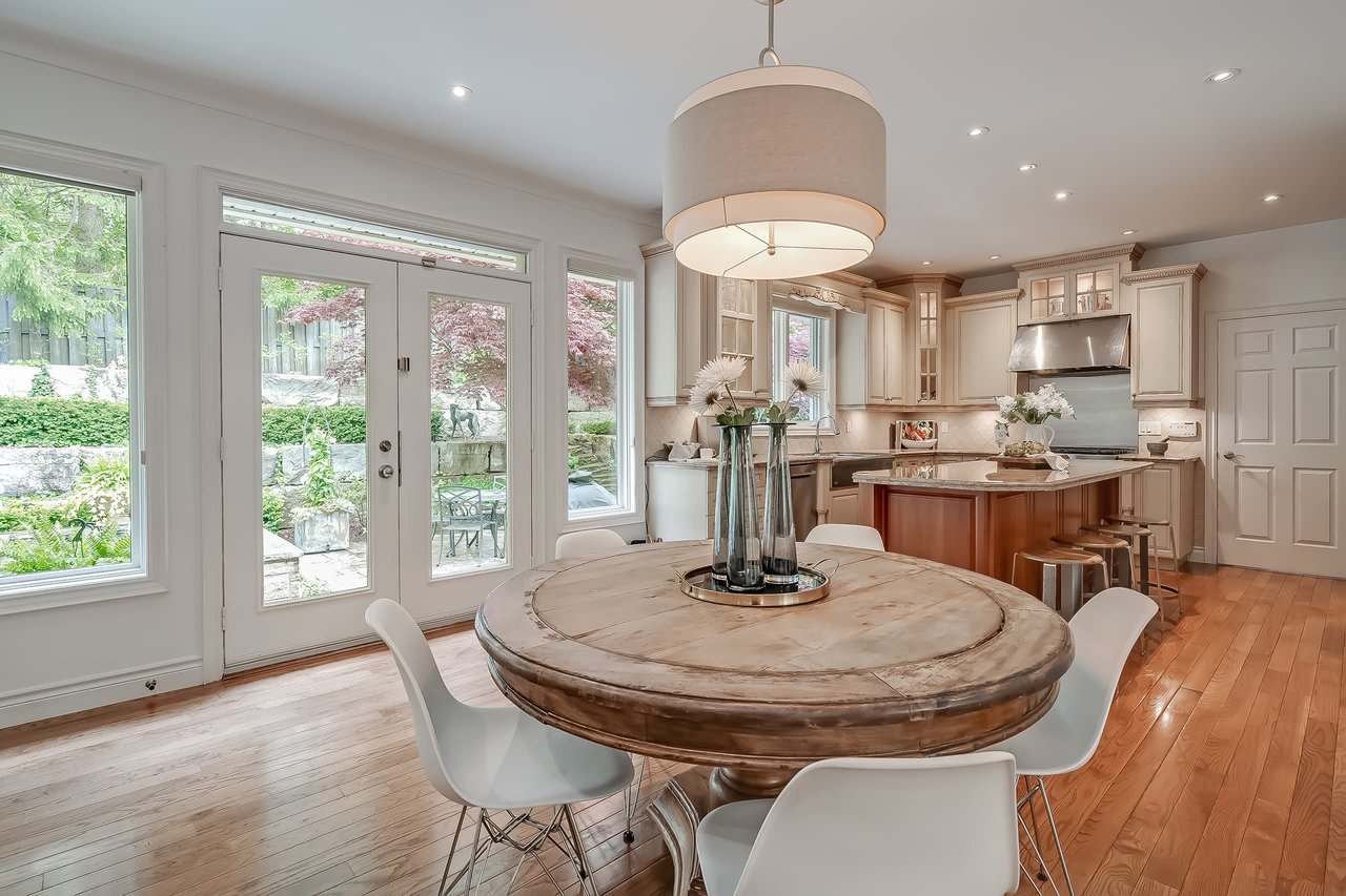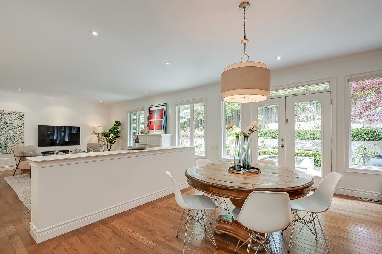 Stepping inside, the interior is open and bright with a classic warm aesthetic with expansive glazing that captures the lush surroundings perfectly. The ranch-style is evident with a purposeful open layout set over 5000sf total with well-defined spaces integrating balance + function. The foyer is generously sized and centres the flow of the home with wide hallways and entrances. A defined dining room offers ample space for formal dinners and opens to the kitchen area. The expansive great room features a wall of windows framing the rear gardens and central fireplace wall; creating a cozy spot for evenings spent in. The kitchen will appease the chef at heart with an abundance of milled cabinetry, a central island with seating and large prep space and a walk-in pantry with excellent storage. The mudroom + laundry is tucked at the south end with both garage entry and access to the side yard. Dedicated breakfast area is ideal for morning meals with full glass doors opening to the rear stone lounge + central water feature.