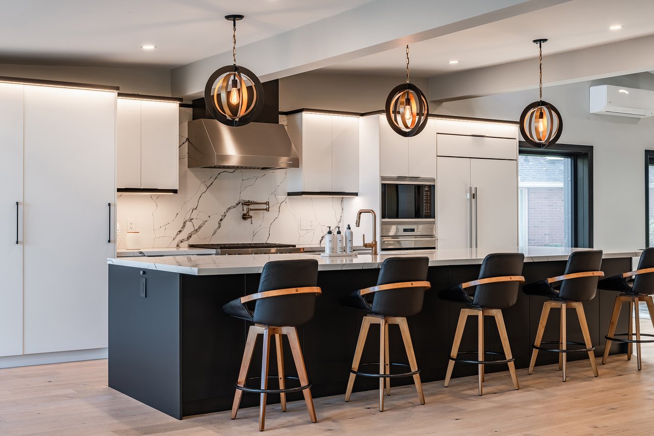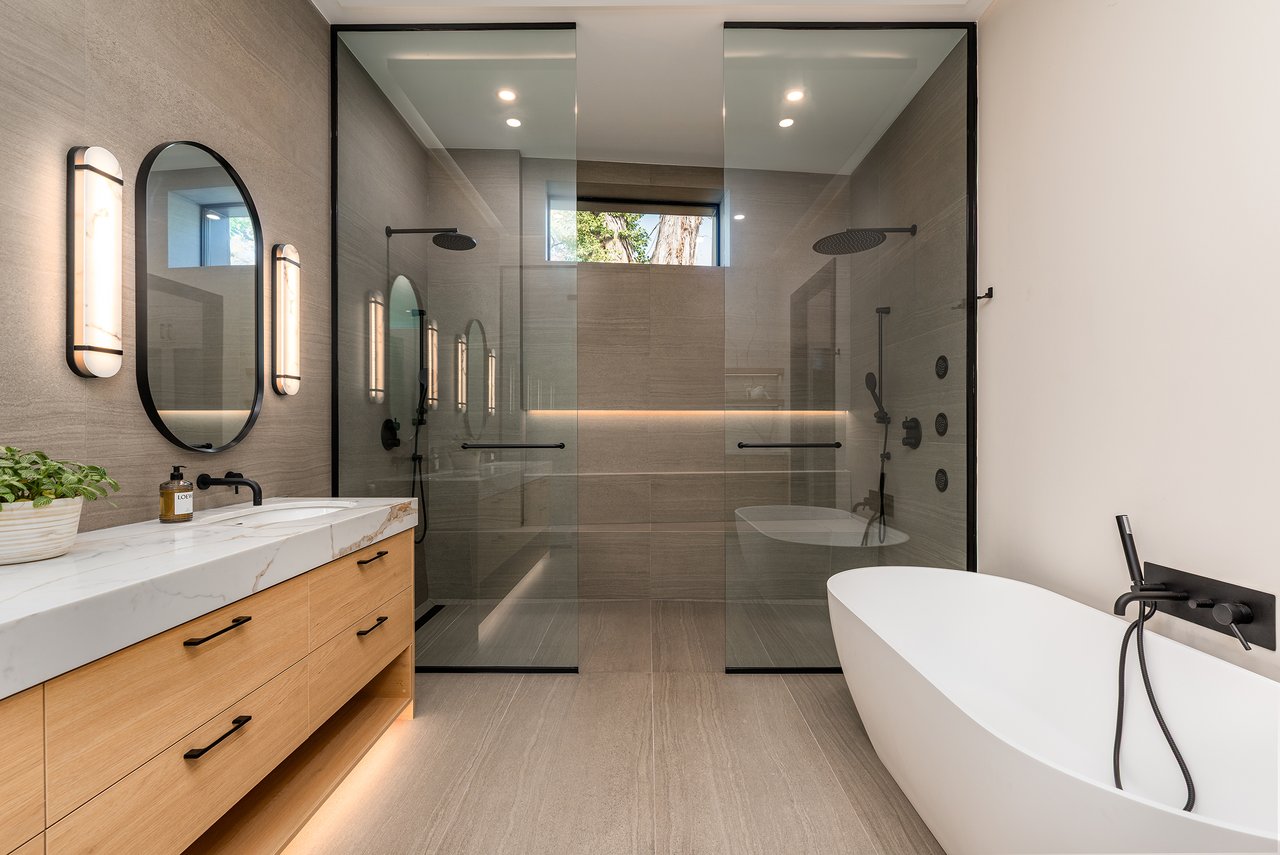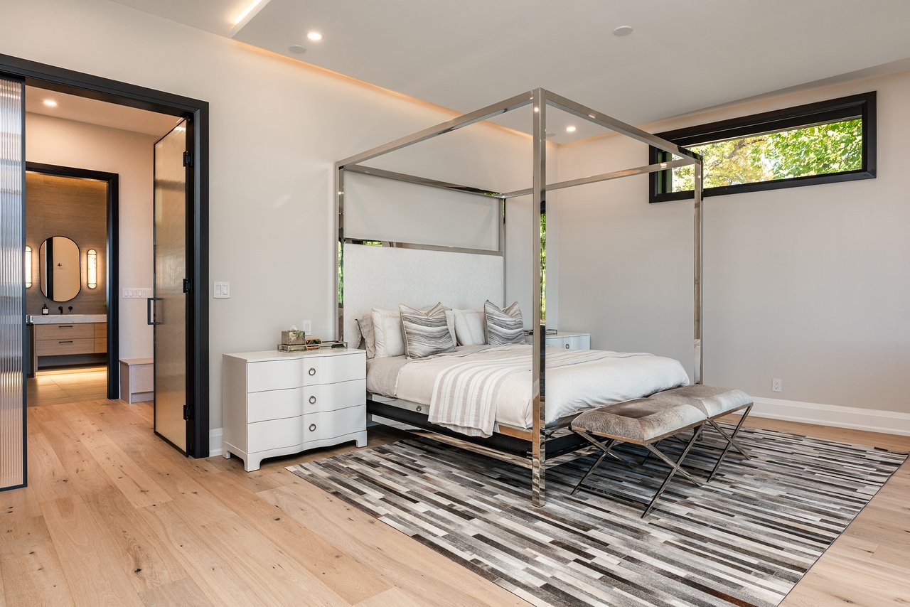 Completely reimagined inside and out, this home offers over 5,200 sq. ft. of finished living space. Its clean-lined façade of natural wood and dark metal opens to a sun-filled interior where the architecture and landscape connect at every turn. A 12-foot vaulted ceiling defines the main living area, where walls of glass bring the lake into full view. Light engineered hardwood runs throughout, balancing the warmth of wood with a modern palette of black-framed windows and stone accents.