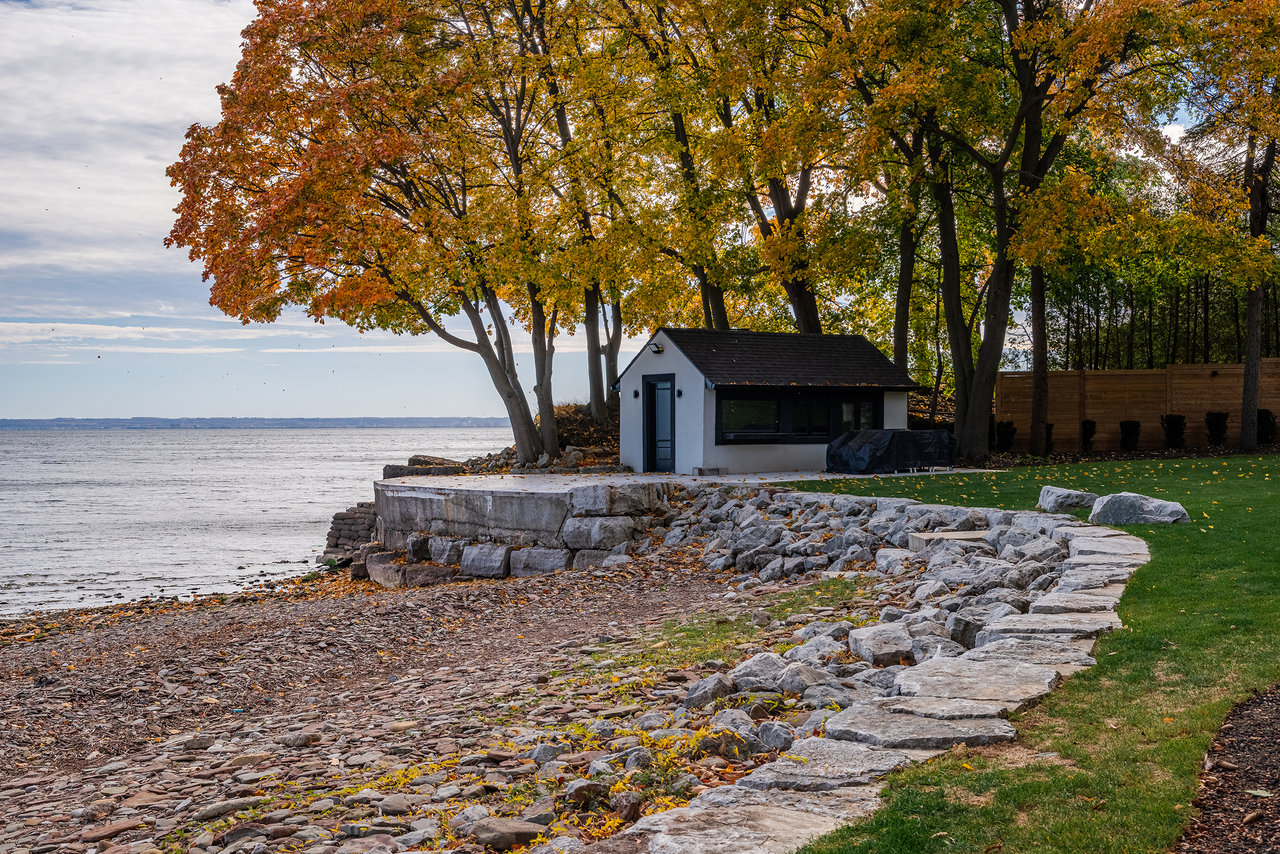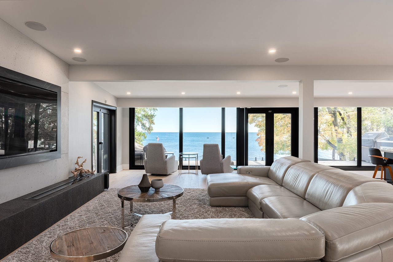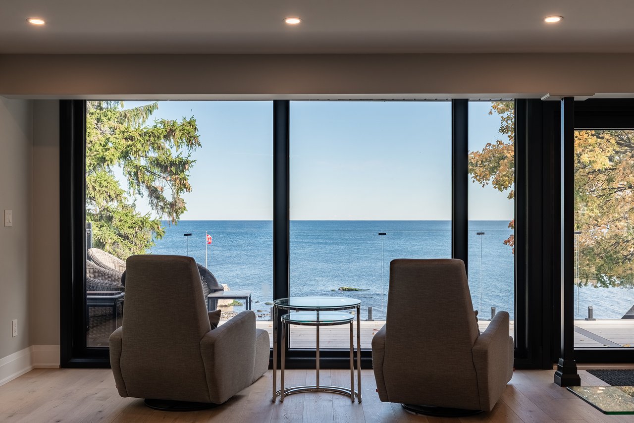 A truly rare blend of modern architecture and natural tranquility, 121 Edgecliffe Place sits at the meeting point of Appleby Creek and Lake Ontario. The site feels like a secluded retreat yet remains right within the city. The lot offers over 29,000 sq. ft., with 105 feet of direct lakefront and 130 feet along the creek, with riparian rights. It is a truly special position along Burlington’s waterfront.