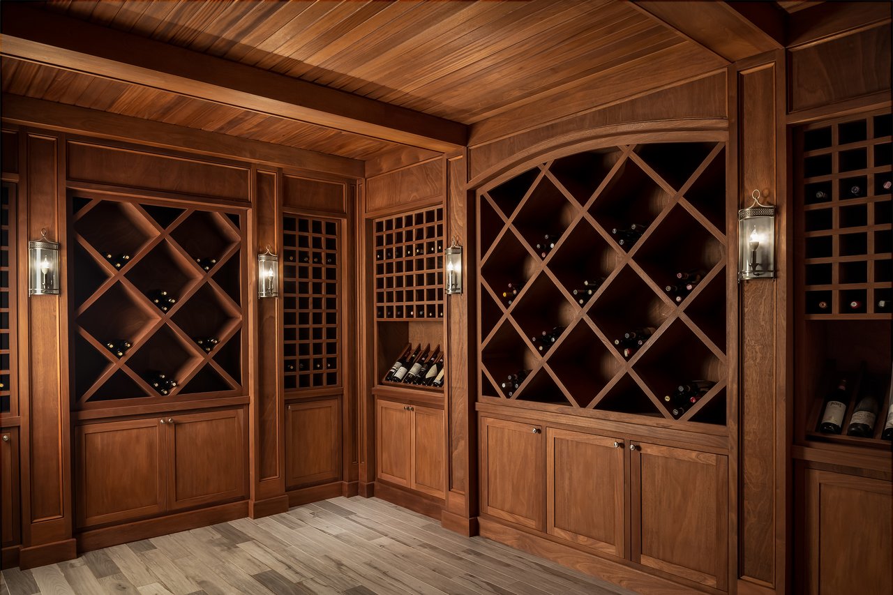 The great room is warm and inviting, as its scale is balanced by the tones of the walnut cabinetry and cathedral ceiling.