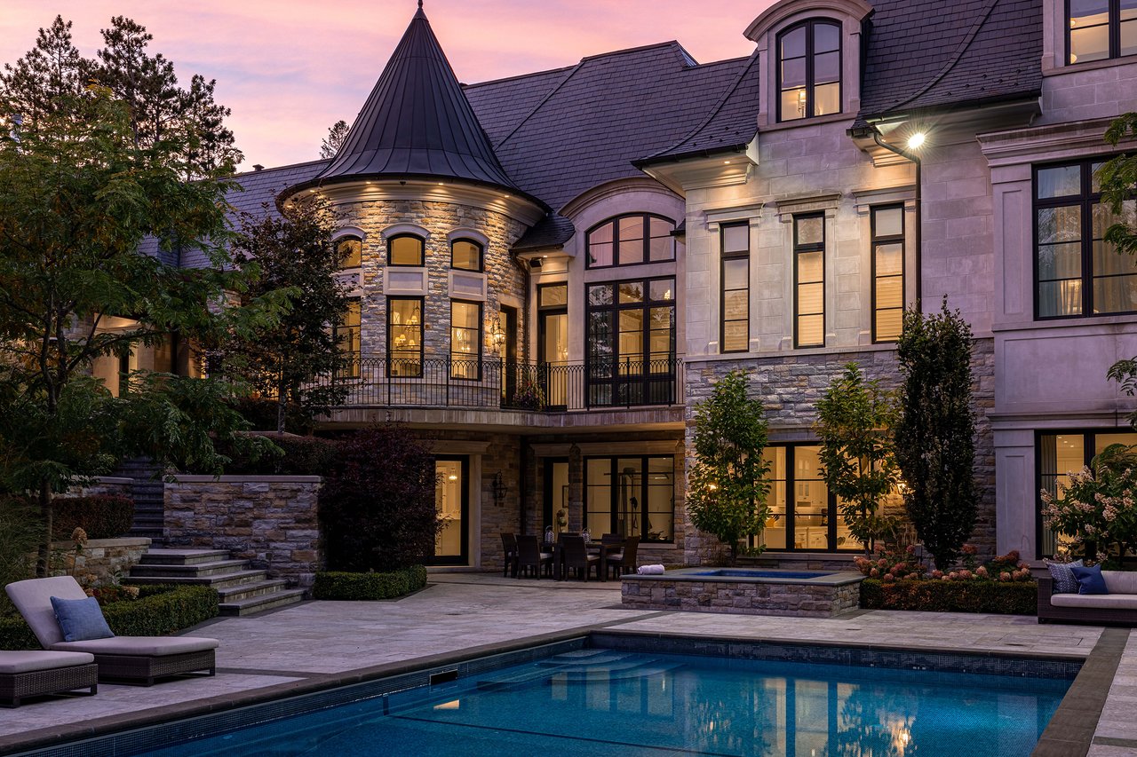 Conceived by Architect, Frank Falcone, Rebecca’s classic exterior celebrates the use of time-honoured materials such as Indiana limestone, natural slate roofing, natural stone, granite and copper detailing. The interior is a sun-filled voluminous space with wide corridors, cathedral ceilings and large principal rooms. Interior Designer, Robin Nadel compliments this home’s classic lines by featuring a transitional aesthetic rooted in a sophisticated and elegant palette designed to withstand changing trends. Extensive cabinetry, trim work, millwork, plaster detailing, natural stones, wall panelling, wide plank flooring, inlay detailing, and an outstanding lighting schematic sets the backdrop for this truly beautiful residence. Every square inch was constructed with the greatest attention to detail and with exceptional craftsmanship.
