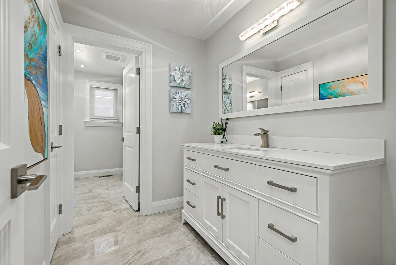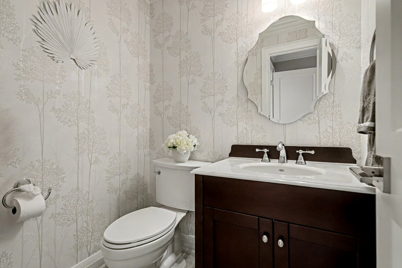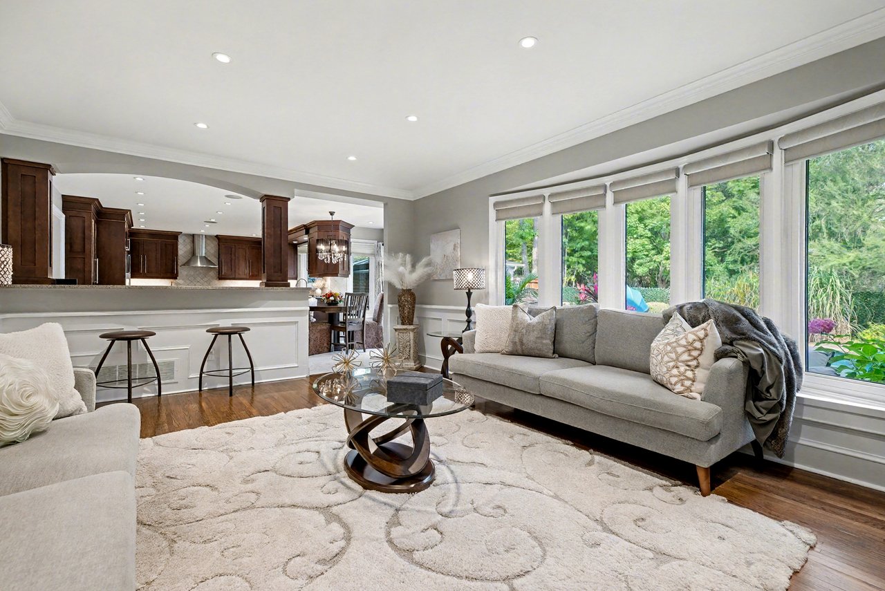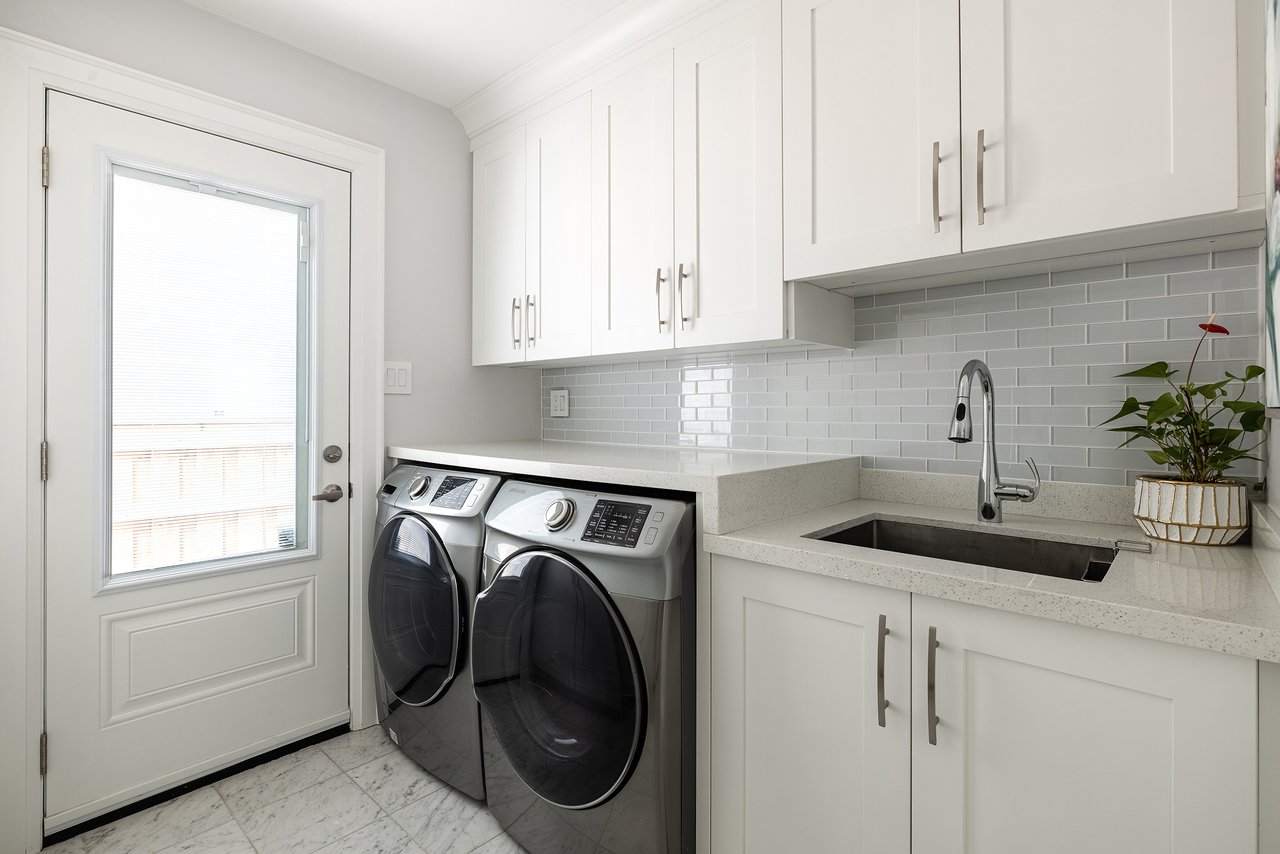 Solid wood custom kitchen cabinets with quartz countertops, new appliances, built-in eat-in area, and niche to do homework. Open to family room, great for entertaining. Extensive plaster crown mouldings throughout the main level. Reno’d laundry room.