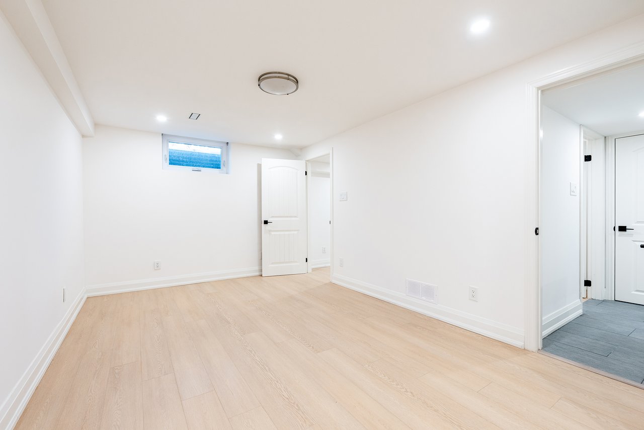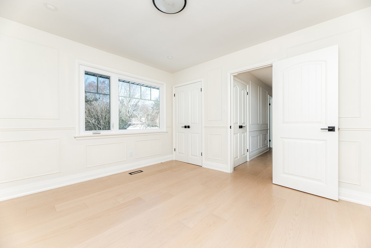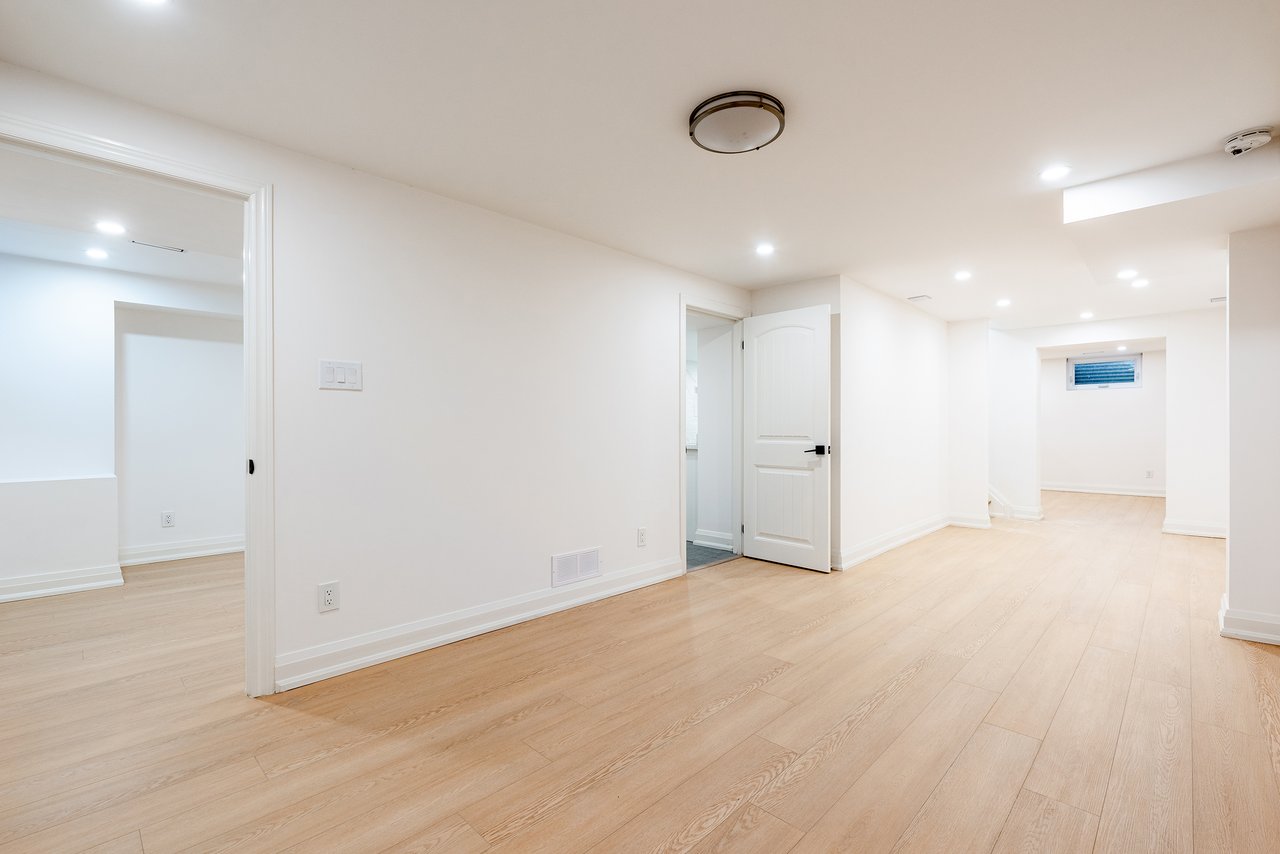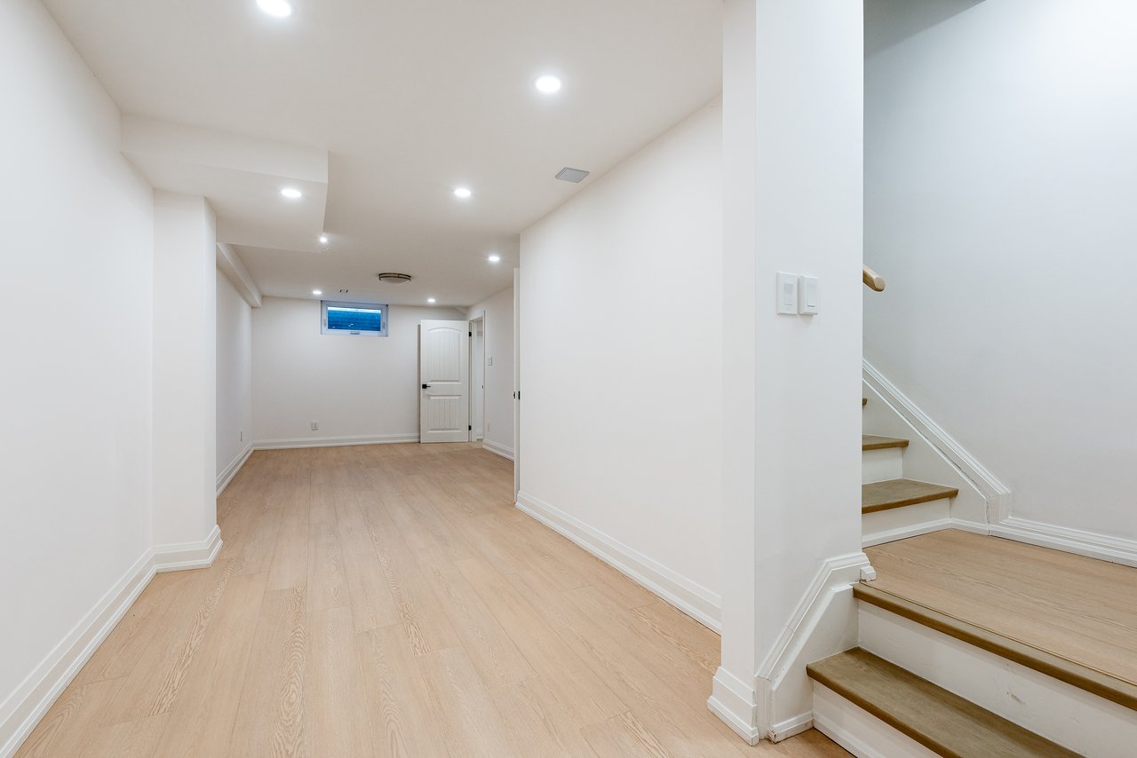 The thoughtfully redesigned main level showcases an elegant open-concept living, dining, and kitchen space, ideal for both refined entertaining and everyday family living, complemented by a private main-floor office. Throughout the home, you’ll find new wide-plank hardwood flooring, custom iron-railing staircases, wainscoting wall paneling, crown moulding, designer baseboards, and pot lighting across all three levels, accented by statement chandeliers and curated lighting fixtures.