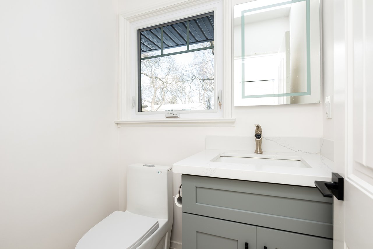 The second level offers four generously proportioned bedrooms, anchored by a luxurious primary room with a spa-inspired five-piece ensuite featuring porcelain tile finishes, glass-enclosed showers, stand-alone bathtub, and expansive LED mirrors, evoking a boutique-hotel aesthetic.