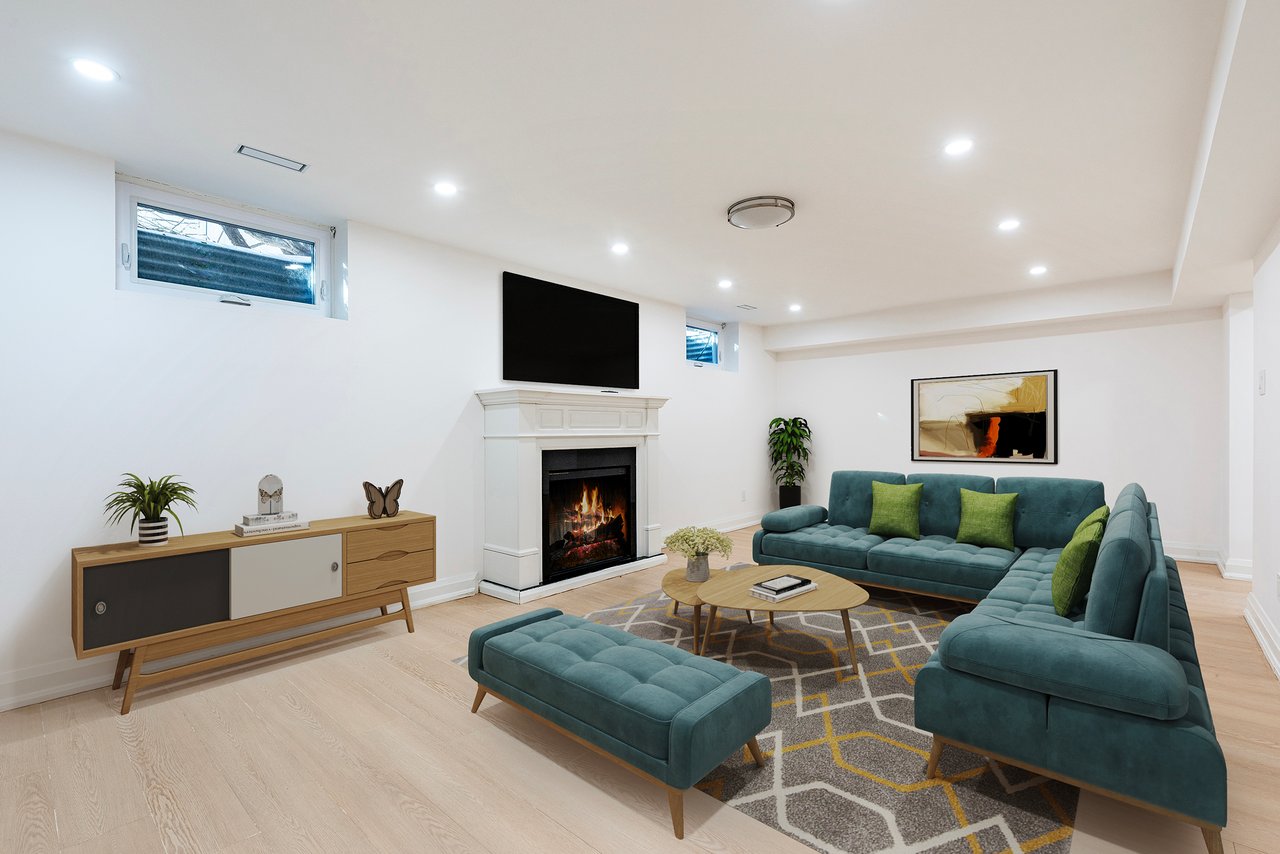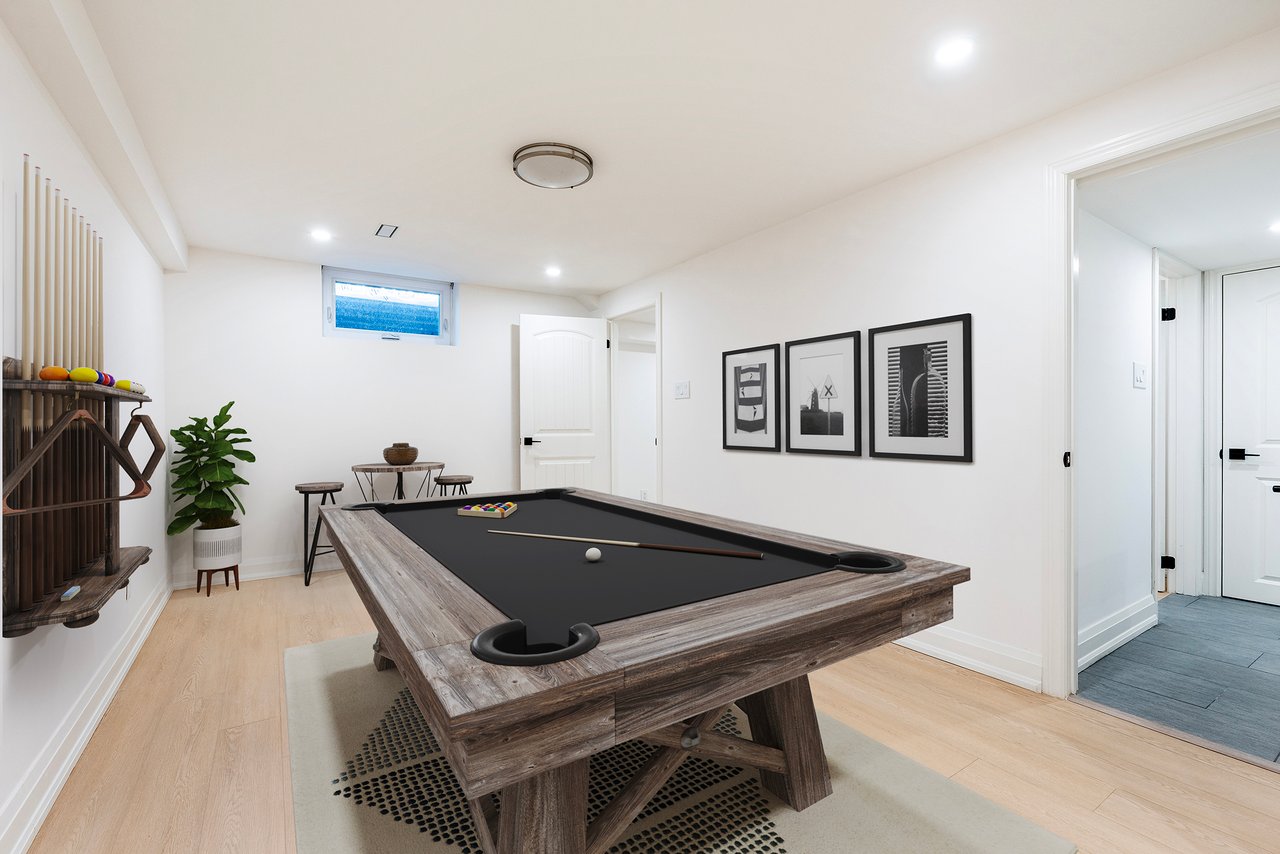 The newly finished lower level expands the living space with a spacious recreation room with fireplace, dedicated exercise room, and a guest bedroom with its own ensuite, ideal for extended family or visitors.