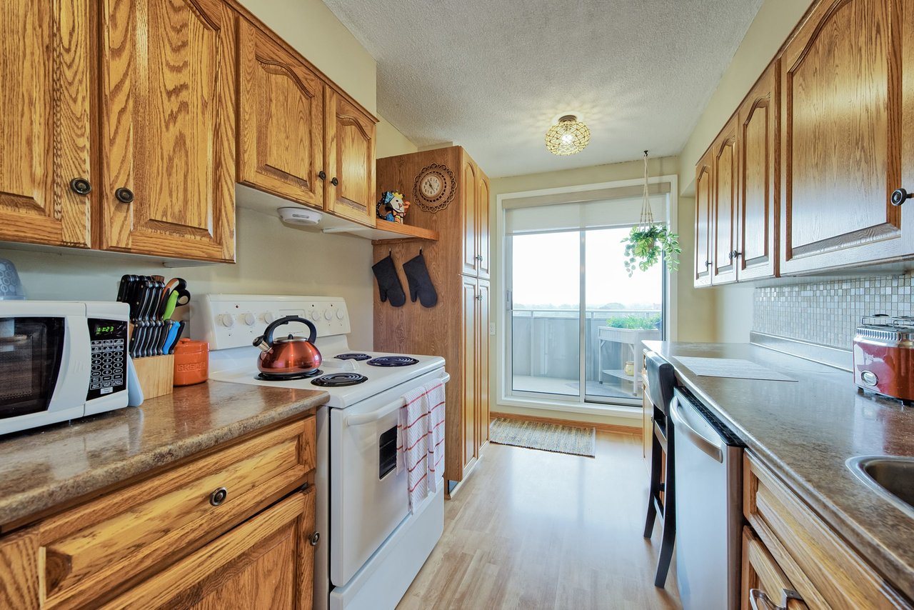 Perfectly suited for first-time buyers or downsizers, this unit features a generously sized living room with balcony access, a kitchen with balcony access, a dining room, a spacious primary bedroom with an ensuite, a second bedroom, a main 4-piece bathroom, and the added convenience of in-suite washer/dryer.