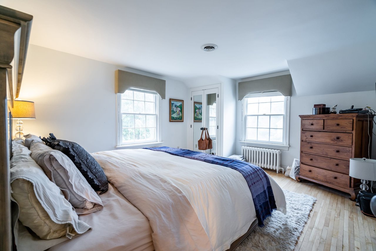The current charming home can be lived in as is or rented with four bedrooms, a traditional center hall plan and a charming sunroom at the back of the house. A perfect long term investment if you don’t want to renovate or build right away.