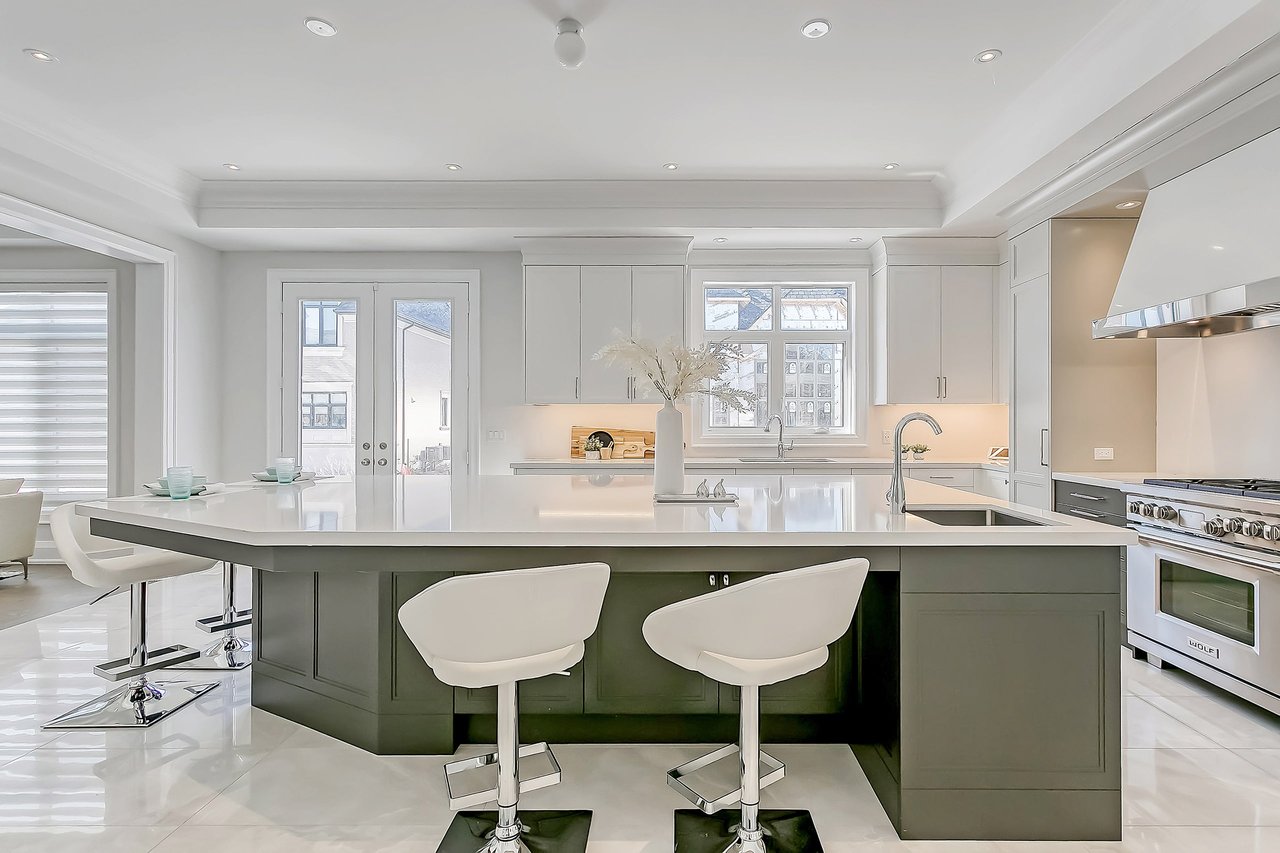 Upon entry the quality and attention to detail is immediately evident. From porcelain flooring with inlaid design to the wonderful Downsview Kitchen this home features unsurpassed luxury. The main level features 10’ ceilings and boasts an open and airy design with large principal rooms making it an entertainer’s dream. An open concept kitchen and great room area features waffle ceilings, natural gas fireplace with custom cast stone mantle and large windows allowing for great natural light. A chefs dream kitchen with a transitional flair features top-of-the-line SubZero and Wolf appliances, a massive center island with breakfast bar capable of seating the whole family (8), a 6 burner gas range, wine fridge, a full size 30” fridge and freezer, not to mention 2 full size dishwashers perfect for handling group gatherings. The main level is completed by an office separated by double French doors allowing for privacy when working from home, a 2 piece powder room, a mudroom with separate entry from both front driveway and rear patio areas and a formal dining room.
