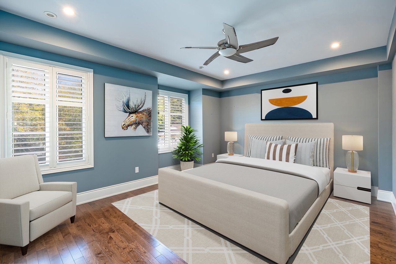 The second level offers two generously sized bedrooms - one with a Juliette balcony + ample storage, perfect as a home office; the other with expansive glazing + a walk-in closet. A stylish main bathroom + laundry complete this floor. The primary spans the entire third level, offering a luxurious private haven. The bedroom is oversized, with two walk-in dressing rooms and a spa-like bathroom that feels hotel-worthy: it really is a private retreat.