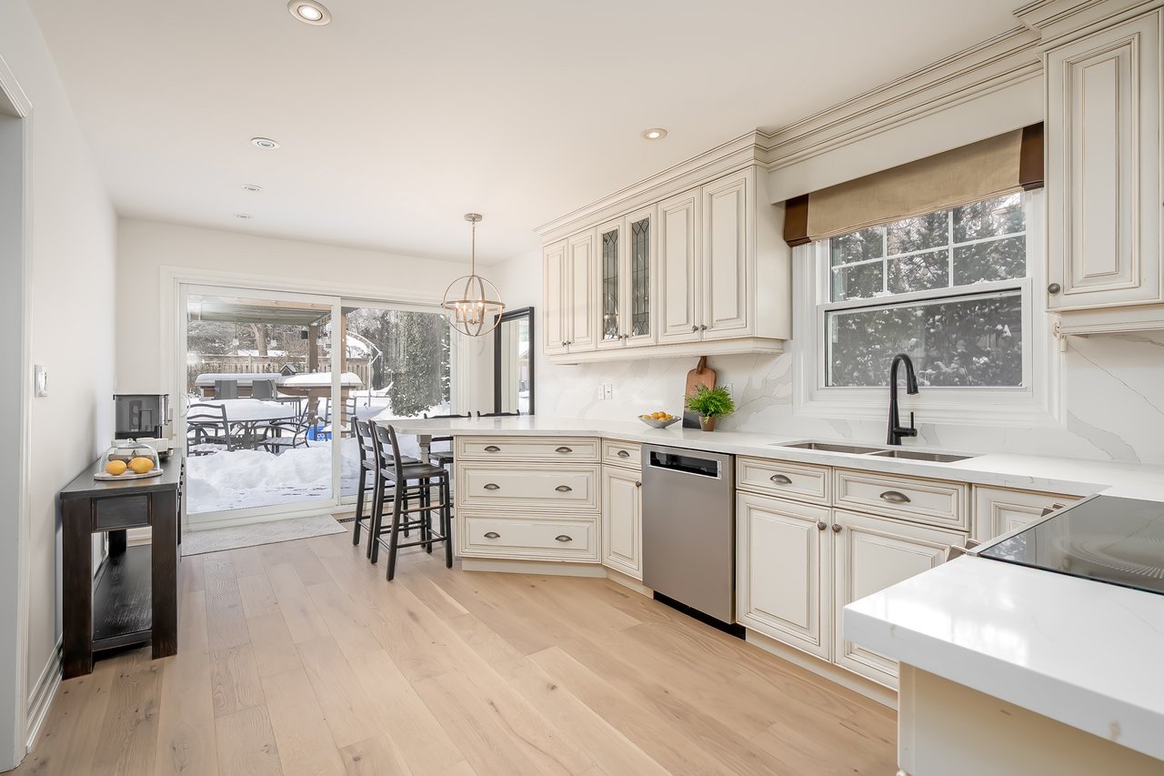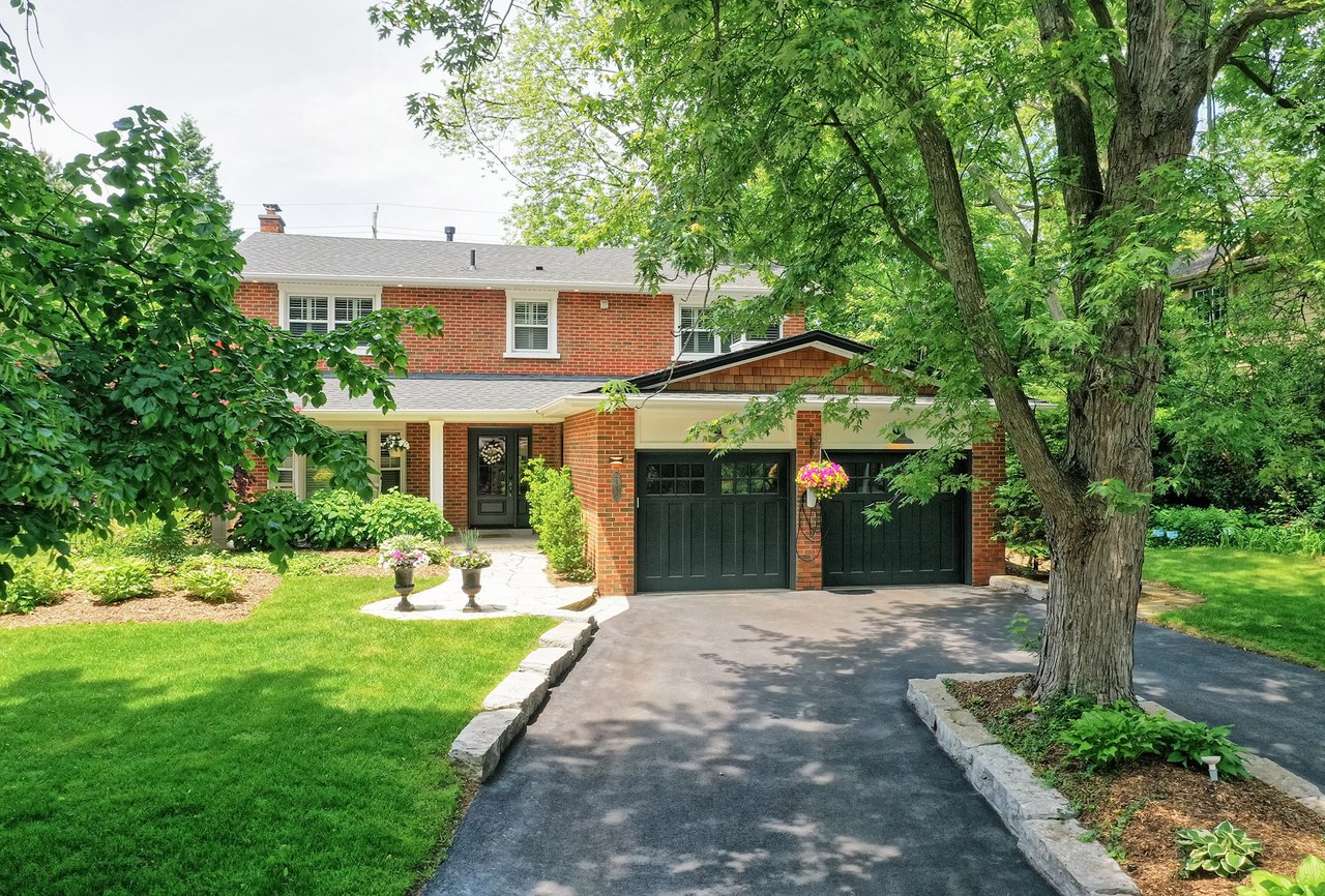 Sitting within a prestigious enclave south of Lakeshore Road in well-established Ford, this executive family home blends traditional comfort with contemporary refinement. Ideally positioned and tucked back on a mature lot, framed with mixed evergreens, this beautiful home is a short stroll to the shores of Lake Ontario + located in a well-known family friendly pocket. Boulder-lined drive + flat stone pavers lead to the cedar-planked front portico – an ideal spot for morning coffee. The stately entrance opens to reveal a refined + cohesive interior. This is a sophisticated home with an immaculately private estate with resort style back yard.