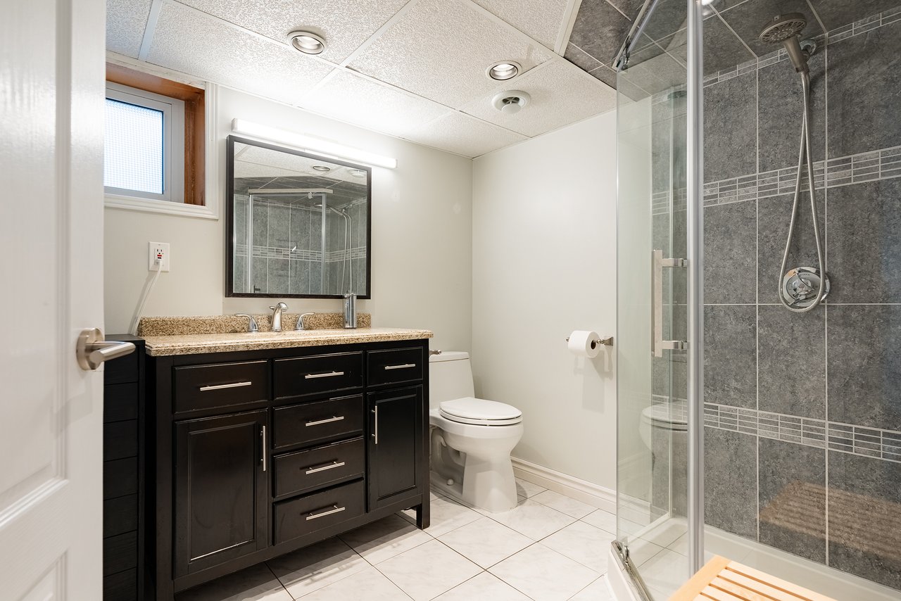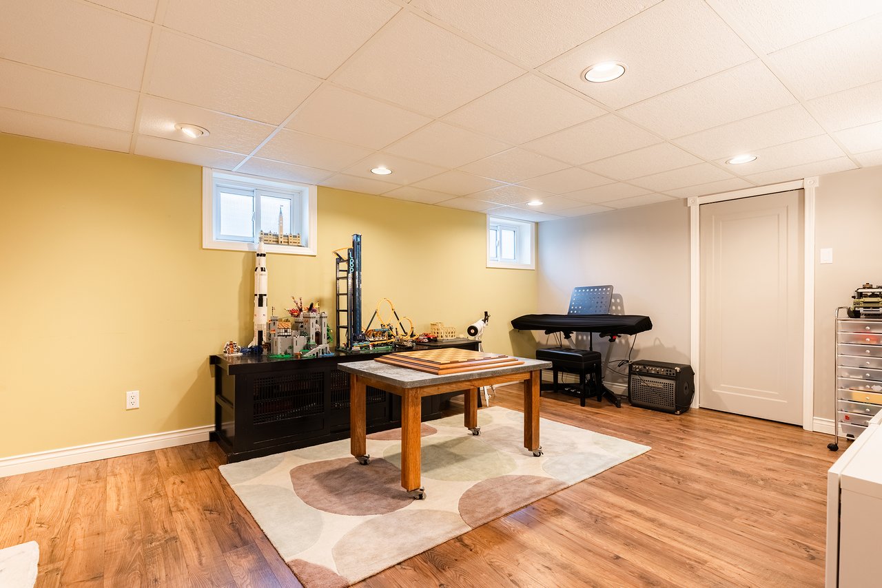 Featuring a large recreation room with fireplace, dedicated office, den, laundry room and ample storage. This level offers endless possibilities for extended family living, work from home setups, or future redesign.