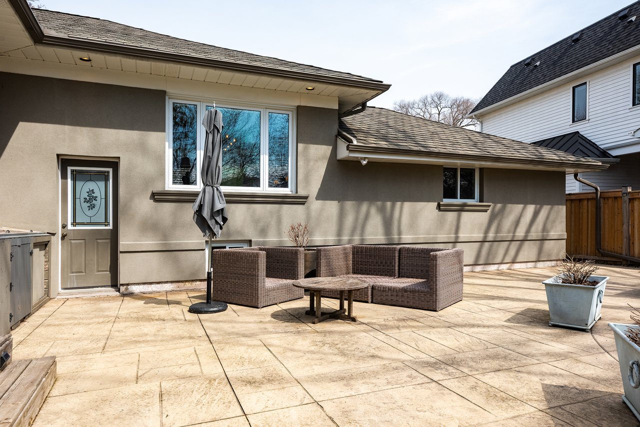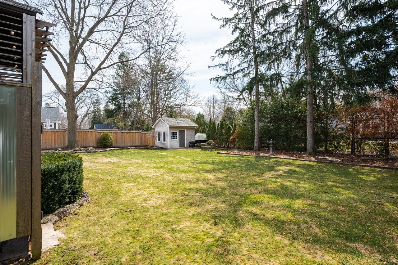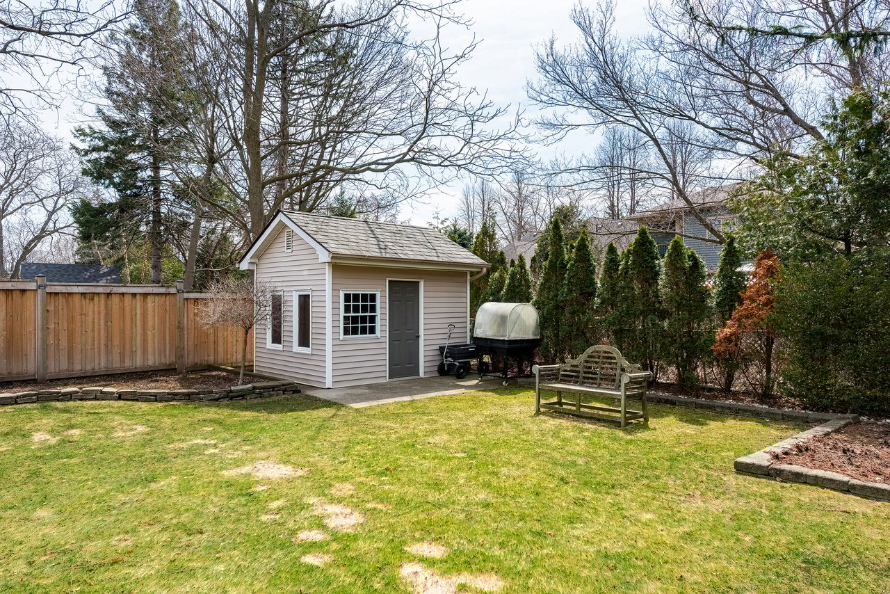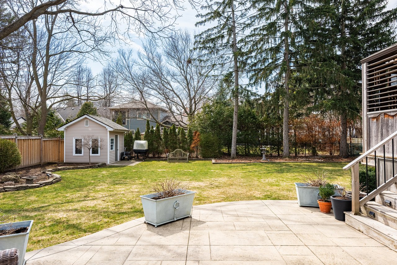 Step outside to a large, private backyard framed by mature, towering trees. An ideal setting for both relaxation and entertaining. Enjoy a beautifully designed stone patio, perfect for summer evenings, along with a charming garden shed for added storage and functionality. The expansive lot provides ample space for children to play, gardening enthusiasts or a future addition.