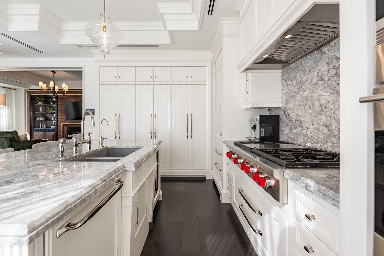 Step inside the grand rotunda foyer with marble floors and classic detailing, setting the tone for the rest of the suite. The Downsview kitchen is a true showpiece - with high-end appliances, marble counters, and intricate crown moulding - perfect for both cooking and entertaining. The kitchen opens to a spacious great room with a gas fireplace and adjoining dining area, creating a warm and inviting space to gather with friends and family.