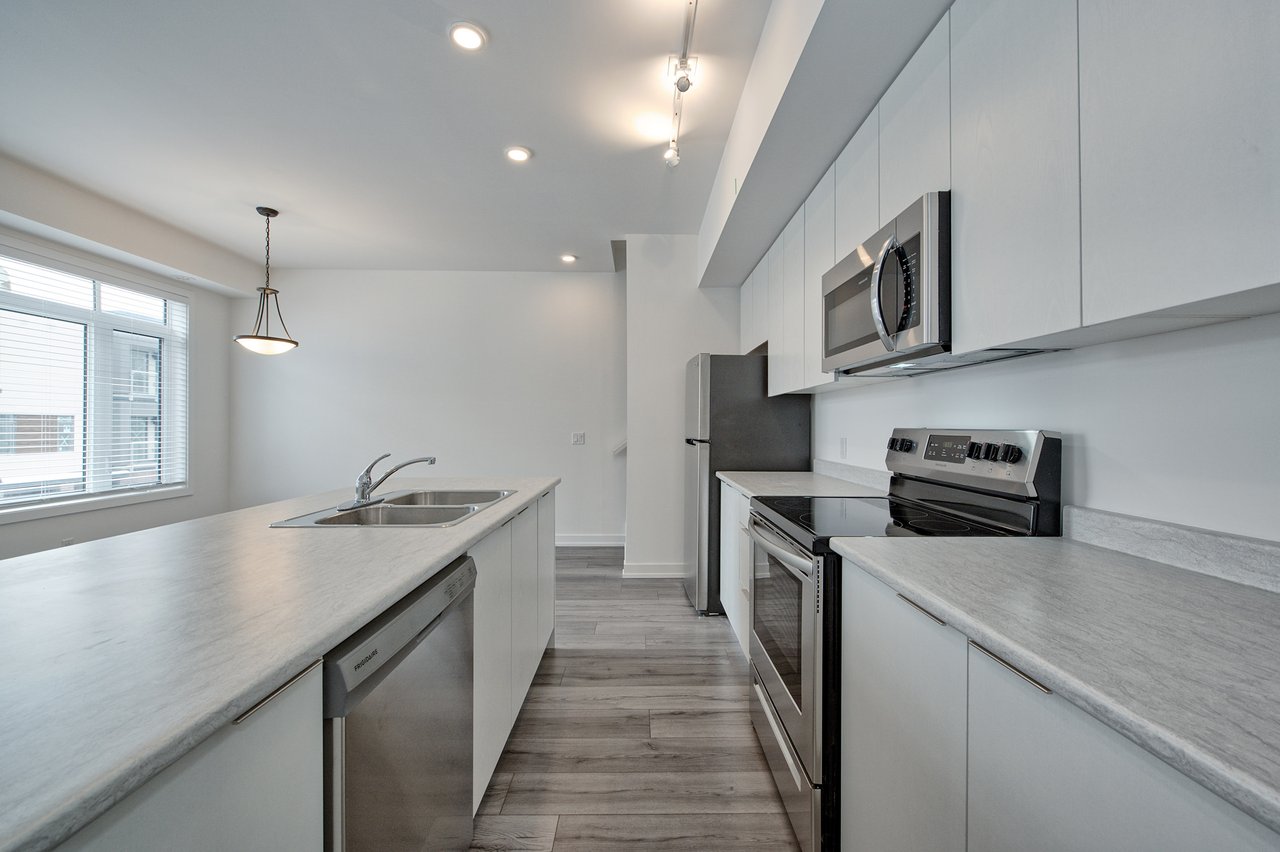 Discover contemporary living in this beautifully designed 1,465 sq ft stacked townhome, complete with a private rooftop terrace. Thoughtfully laid out, the main level offers an open-concept living and kitchen area featuring stainless steel appliances, sleek modern cabinetry, and a full bathroom—an ideal space for entertaining or everyday family living. The upper level hosts two well-appointed bedrooms, a second full bathroom, and conveniently located laundry. Sun-filled stairs lead to the expansive rooftop terrace, offering a private, fully fenced outdoor oasis perfect for relaxing, dining, or hosting gatherings. Situated in a sought-after Oakville community, this home is moments from major highways (403 & 407), top-rated schools, neighbourhood parks, and the new Oakville Trafalgar Hospital. A fantastic opportunity to enjoy a modern, low-maintenance lifestyle in one of Oakville’s most desirable locations.
