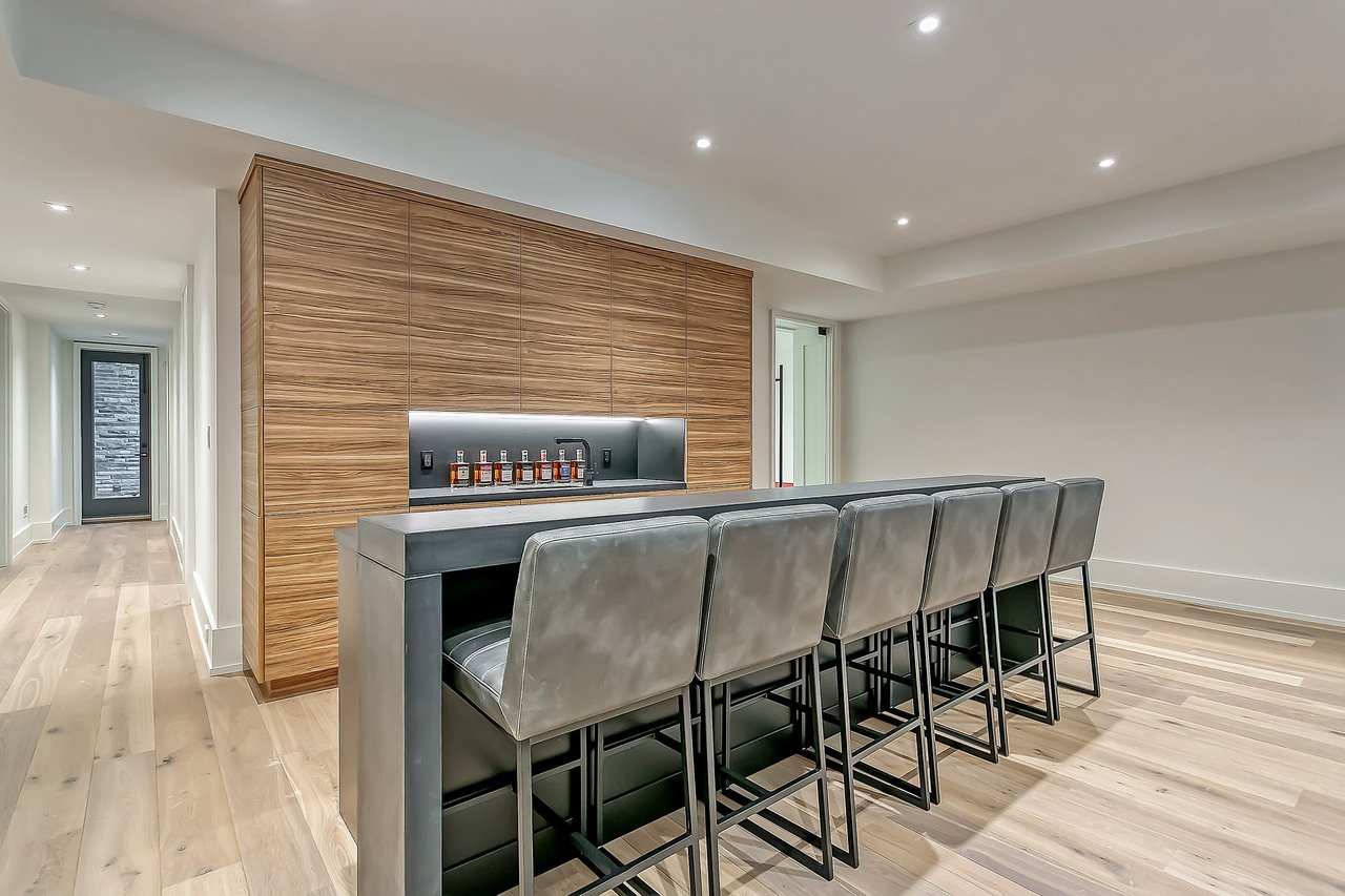 The lower level of this home is the perfect space for the family to spend the weekend. A large rec room is overlooked by a wet bar – great for movie night. The highlight of this space is the indoor hockey rink, which could easily be transitioned and originally designed to be to a golf simulator. A large home gym, separate kids’ playroom/den, a sixth bedroom as well as two full washrooms are also found on the lower level.