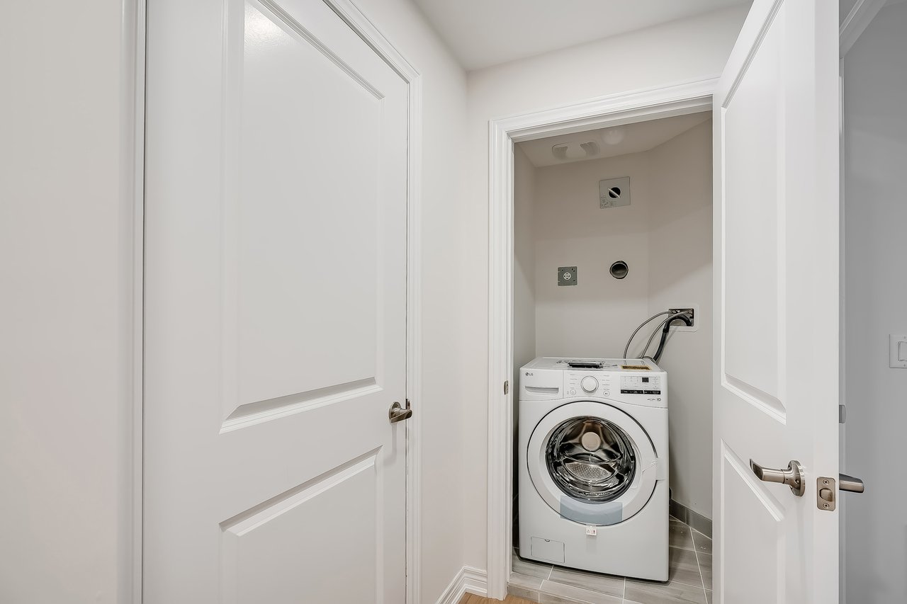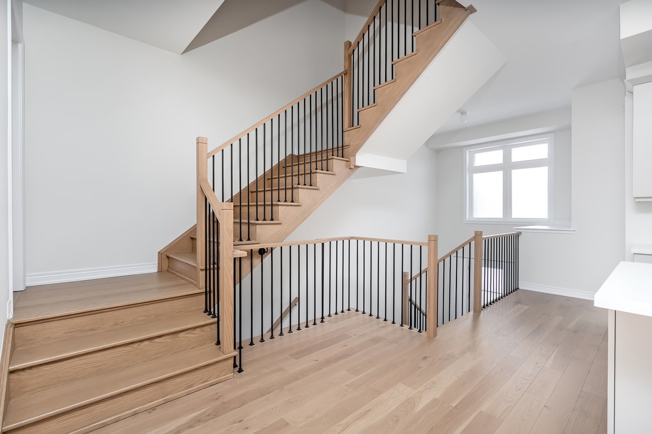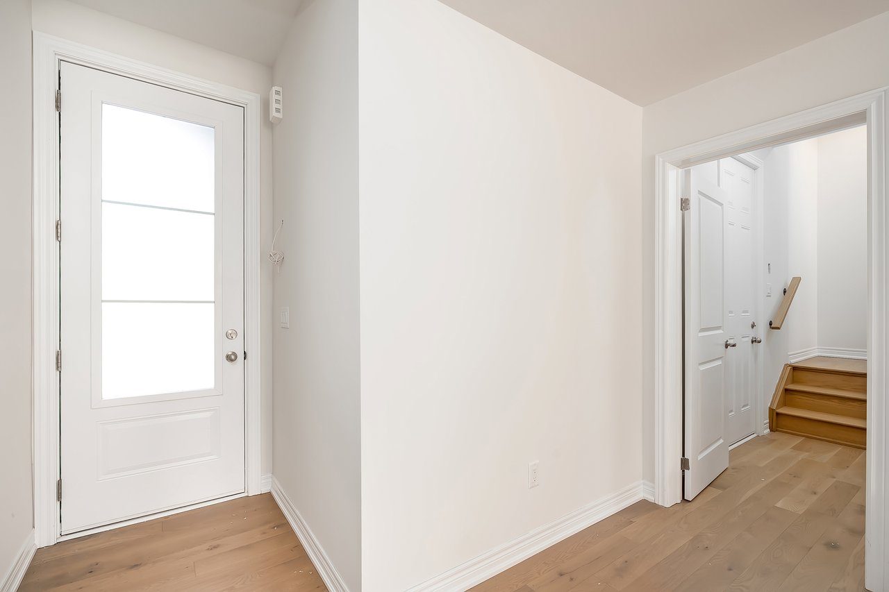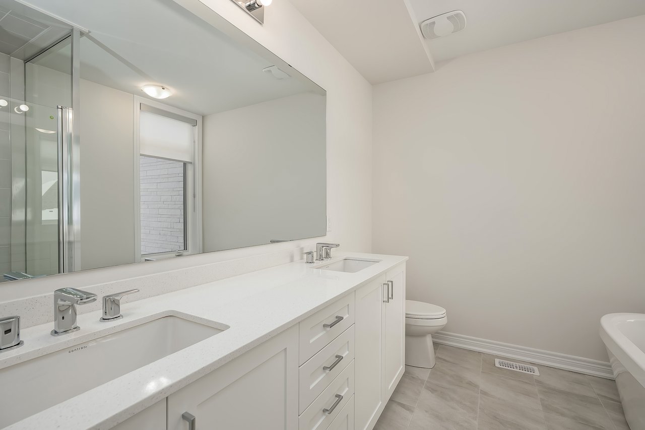 For Lease. Inviting urban freehold townhome in the central hub of upper Oakville. This growing community offers a blend of established amenities with the energy of new development. This is a brand- new executive townhome offering approximately 2611 sqft of thoughtfully designed living space across three levels plus a 521sqft basement. It is designed as a duplex – on offer as a whole townhome, it is well-suited for a large family. Total bedrooms is 4 + 1, with another second floor den. Total baths is 3 full + 2 powders. With expansive ceiling heights + windows this townhome is exceptionally bright. It also offers an impressive front terrace, rear terrace + two balconies, giving you ample outdoor space without the upkeep. Unit #1 with gourmet kitchen with modern sleek cabinetry + stainless appliance package + oversized island with bar seating. Open to the dining and family room with cozy milled fireplace + rear terrace. The den space can be used an extra bedroom or private office. The upper level offers 3 bedrooms, a full bathroom + laundry. The primary features generous walk-in, luxurious bath with soaker tub + sleeping quarters with balcony. Nicely upgraded throughout with white oak flooring + quartz counters. Open to the other unit featuring gourmet kitchen with modern sleek cabinetry, stainless appliance package + oversized island with bar seating + lower with 1+1 bedrooms, a full bathroom + laundry. Nicely upgraded with white oak flooring + quartz counters throughout. Each unit with dedicated AC, furnace, hot water tank + oversized storage. Double garage + drive. Close to excellent schools, scenic parks + local shopping and easy access to key commuter routes. Brand new with quality finishes throughout + abundant natural light in a well-established and amenity-rich neighbourhood make this an excellent home choice.