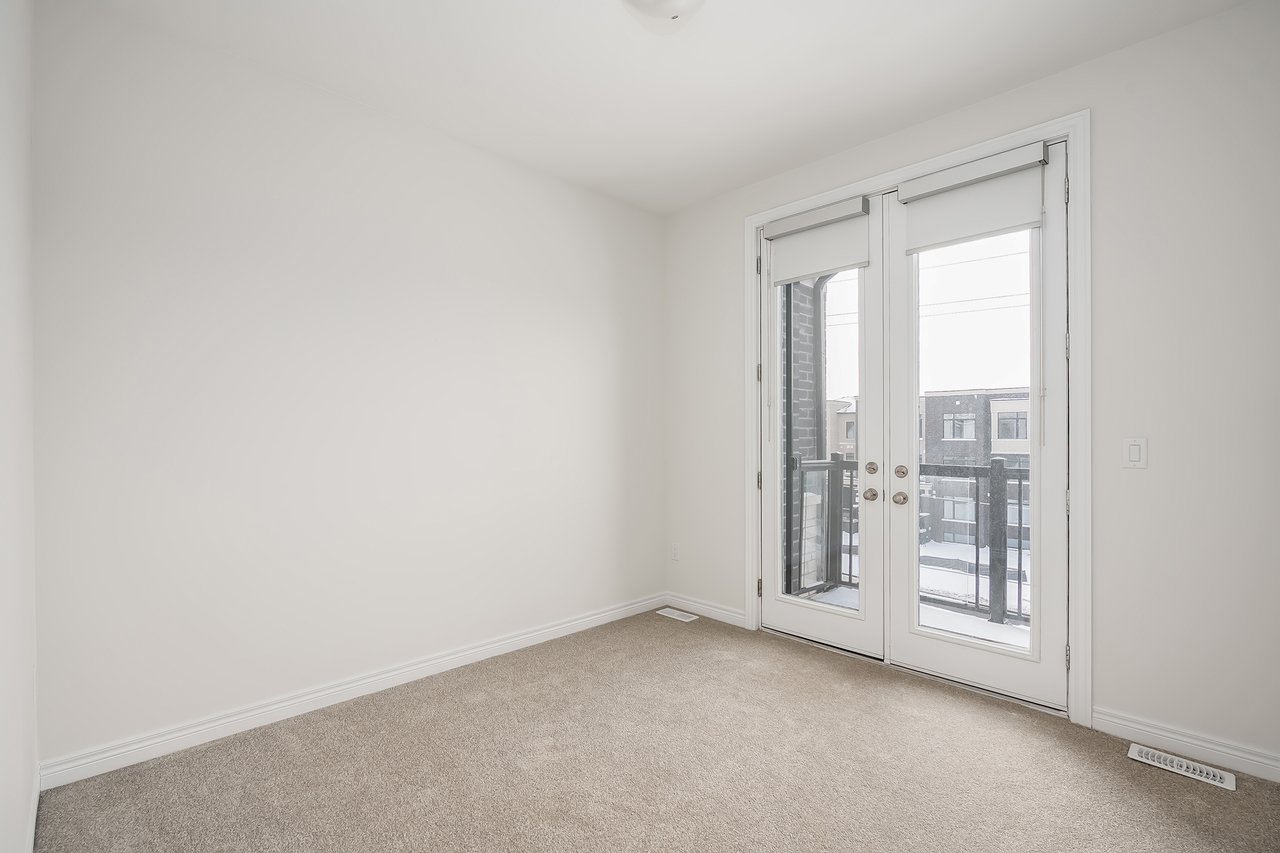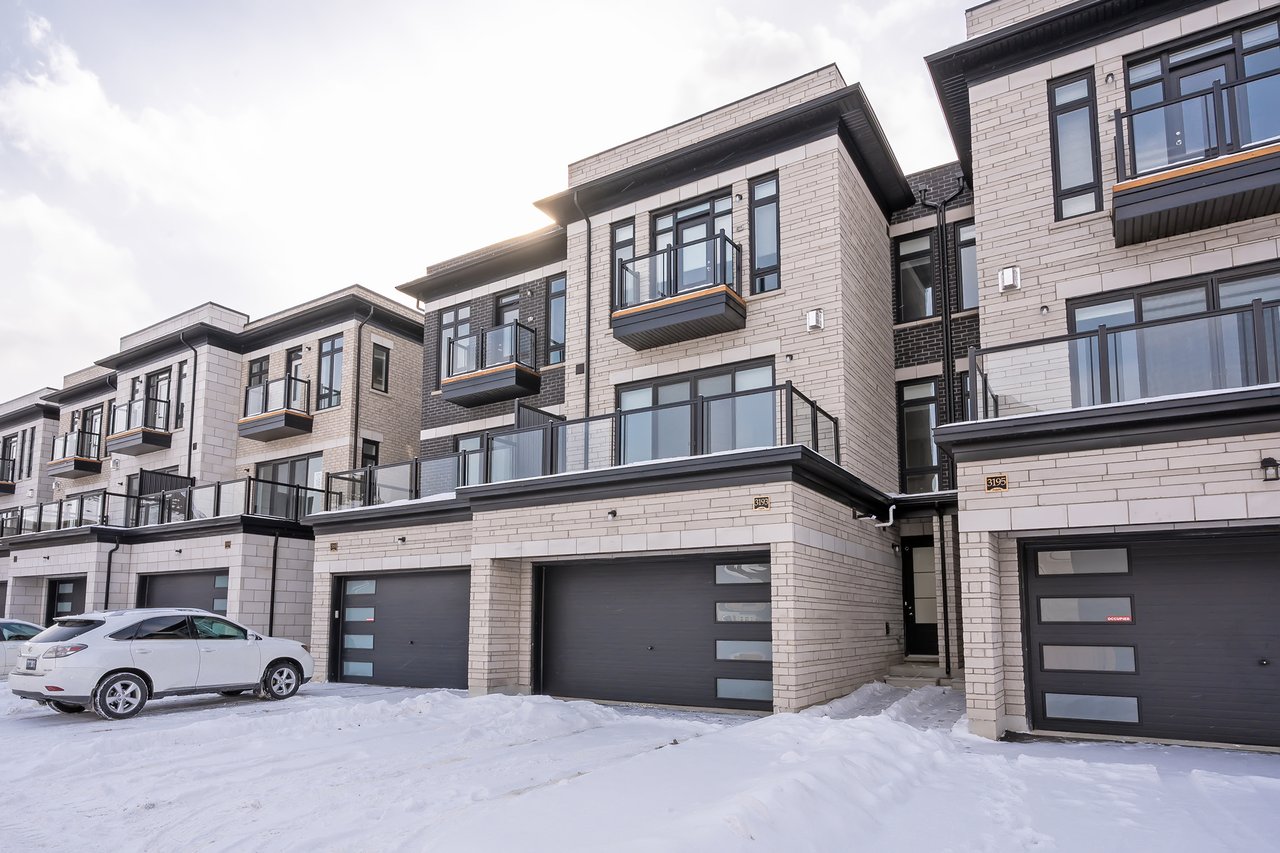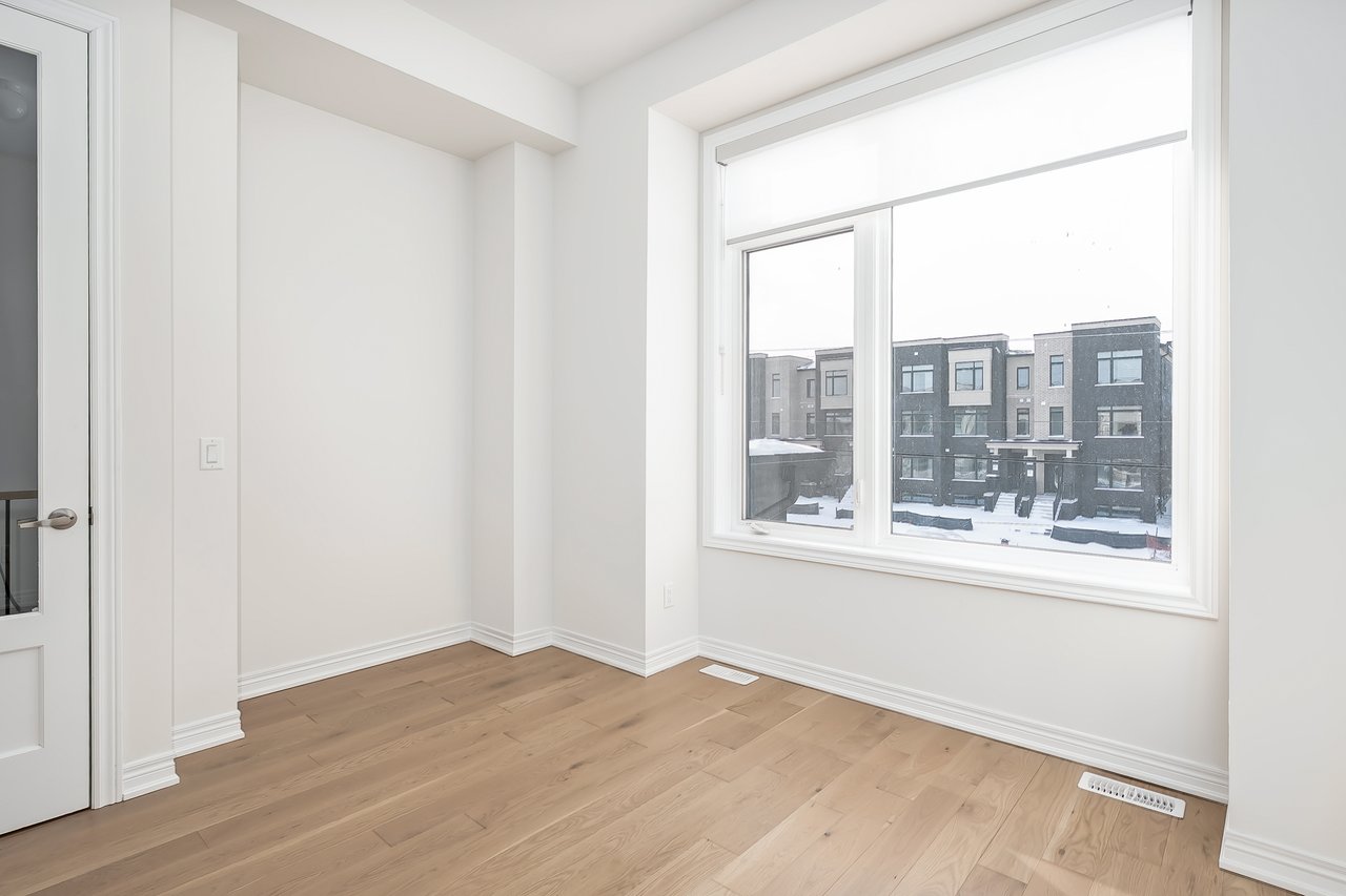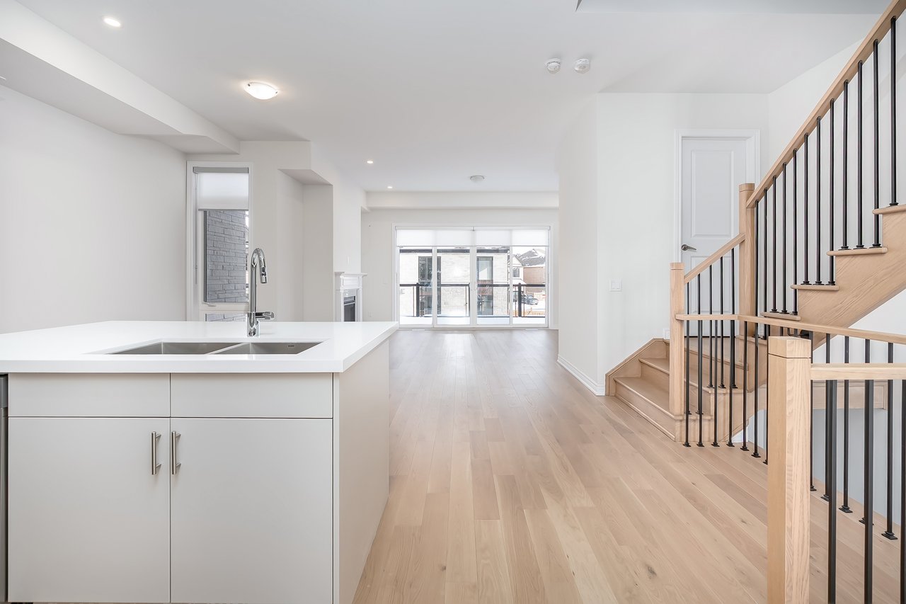 For Lease. Inviting urban freehold townhome in the central hub of upper Oakville. This growing community offers a blend of established amenities with the energy of new development. This is a brand- new executive townhome offering approximately 2005sqft of thoughtfully designed living space across the second + third floors of a duplex. This unit is 3 beds, 1 den and 2.5 baths. With expansive ceiling heights + windows this unit is exceptionally bright. It also offers an impressive front terrace, rear terrace + two balconies, giving you ample outdoor space without the upkeep. The main level is the hub with gourmet kitchen with modern sleek cabinetry + stainless appliance package + oversized island with bar seating – an ideal spot to gather. Open to the dining and family room with cozy milled fireplace + rear terrace. An adjacent power room is highly functional. The den space can be used an extra bedroom or private office. The upper level offers 3 bedrooms, a full bathroom + laundry. The primary features generous walk-in, luxurious bath with soaker tub + sleeping quarters with balcony. Nicely upgraded throughout with white oak flooring + quartz counters. Dedicated AC, furnace, hot water tank + oversized storage. Double garage + one surface parking. Close to excellent schools, scenic parks + local shopping and easy access to key commuter routes. Brand new with quality finishes throughout + abundant natural light in a well-established and amenity-rich neighbourhood make this an excellent home choice.