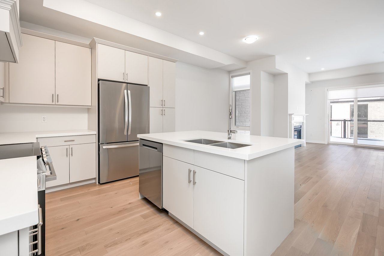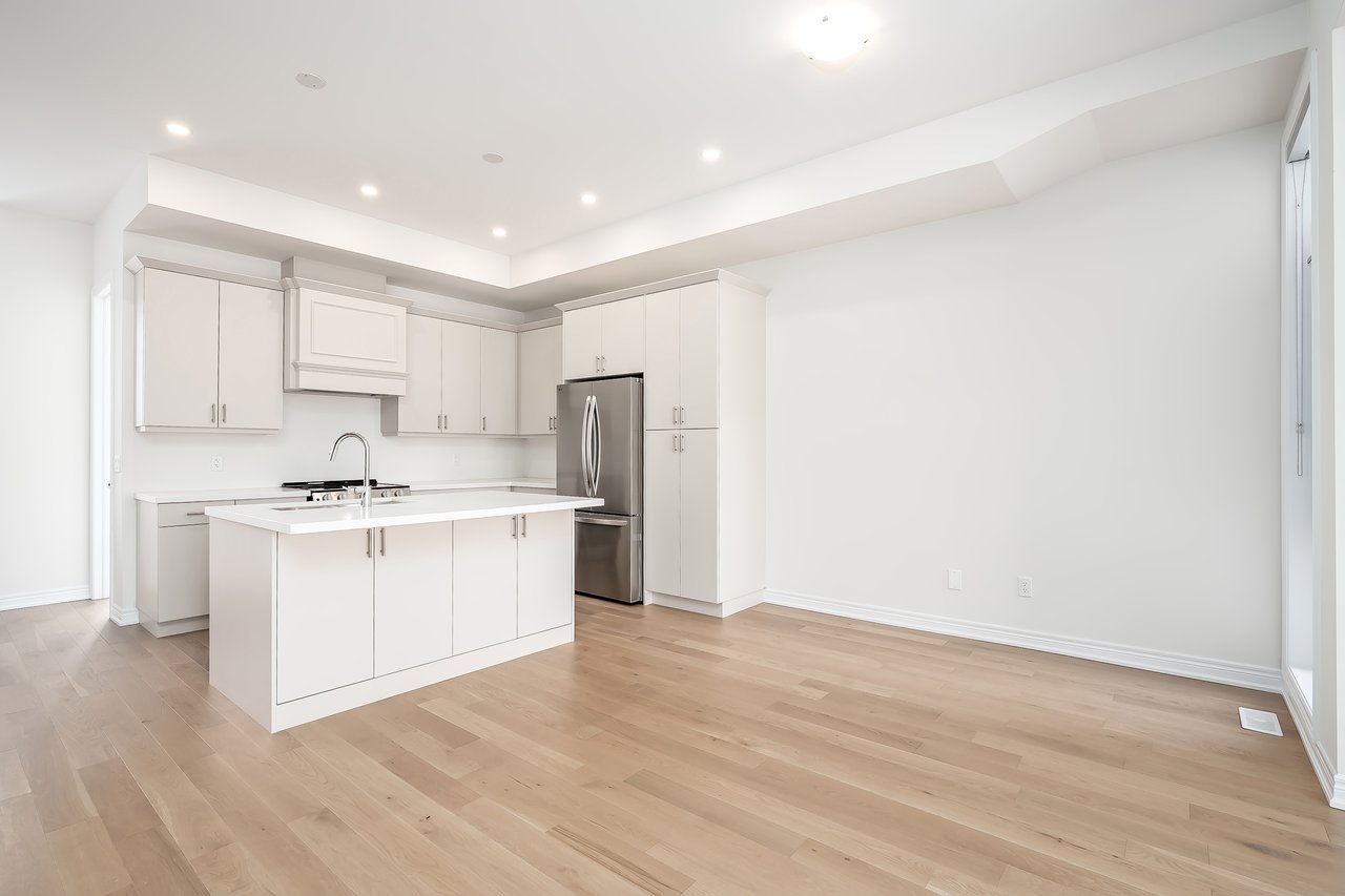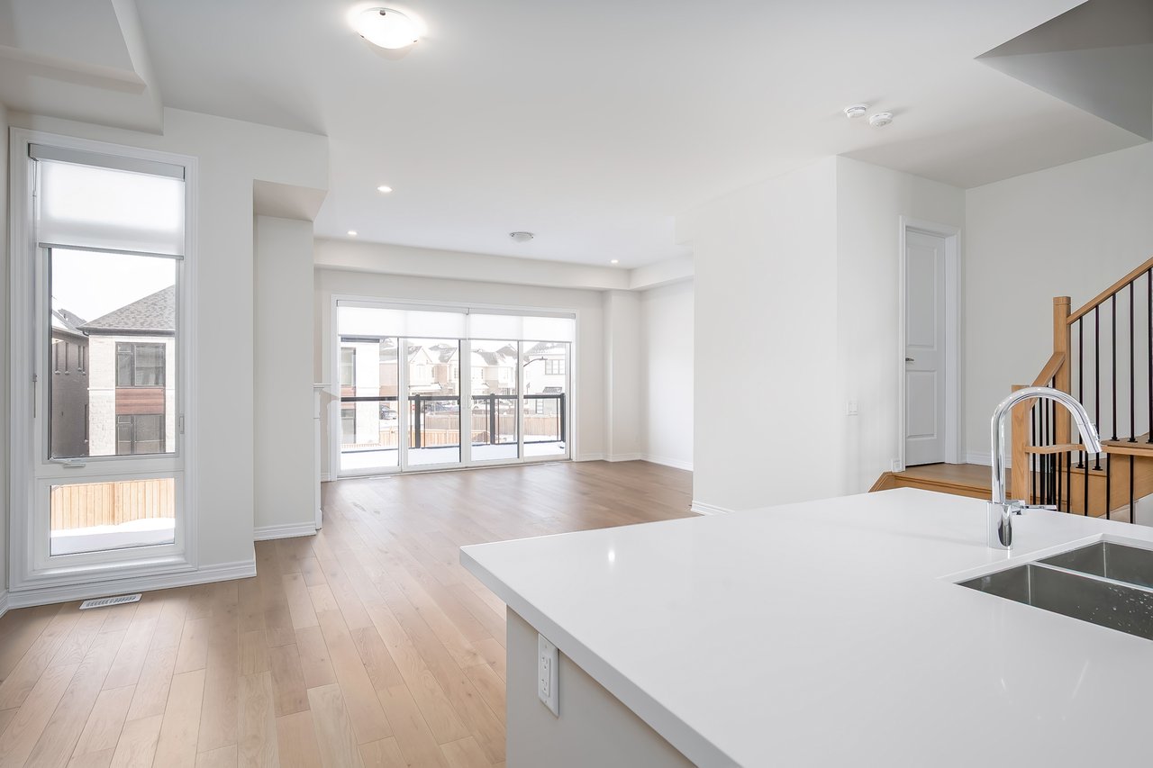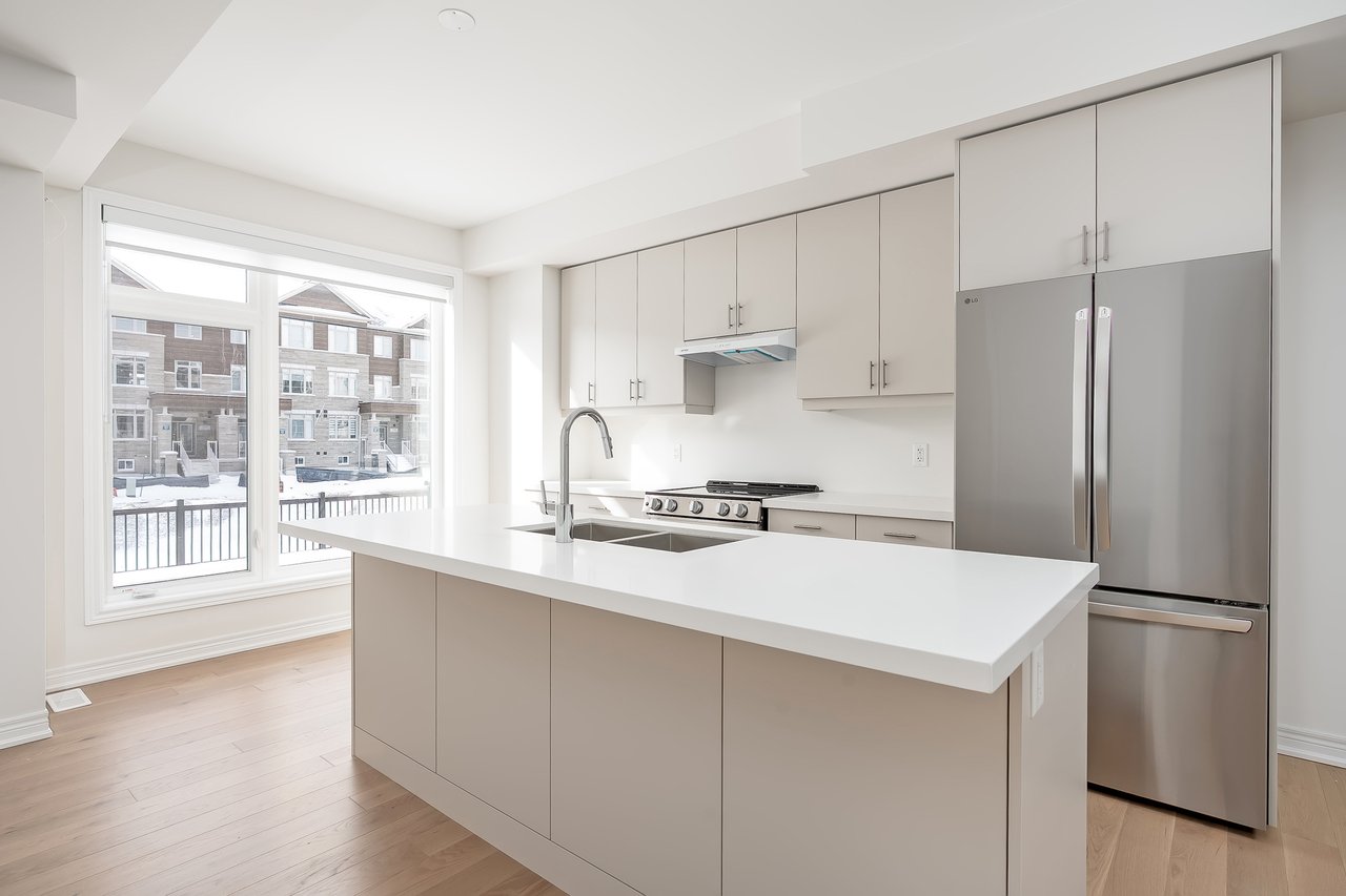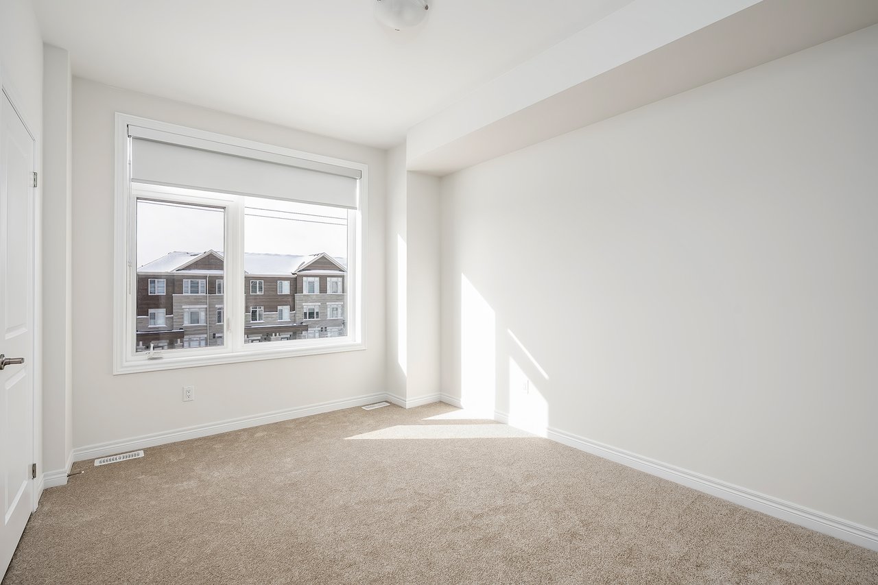 For Lease. Inviting urban freehold townhome in the central hub of upper Oakville. This growing community offers a blend of established amenities with the energy of new development. This is a brand- new executive townhome offering approximately 2005sqft of thoughtfully designed living space across the second + third floors of a duplex. This unit is 3 beds, 1 den and 2.5 baths. With expansive ceiling heights + windows this unit is exceptionally bright. It also offers an impressive front terrace, rear terrace + two balconies, giving you ample outdoor space without the upkeep. The main level is the hub with gourmet kitchen with modern sleek cabinetry + stainless appliance package + oversized island with bar seating – an ideal spot to gather. Open to the dining and family room with cozy milled fireplace + rear terrace. An adjacent power room is highly functional. The den space can be used an extra bedroom or private office. The upper level offers 3 bedrooms, a full bathroom + laundry. The primary features generous walk-in, luxurious bath with soaker tub + sleeping quarters with balcony. Nicely upgraded throughout with white oak flooring + quartz counters. Dedicated AC, furnace, hot water tank + oversized storage. Double garage + one surface parking. Close to excellent schools, scenic parks + local shopping and easy access to key commuter routes. Brand new with quality finishes throughout + abundant natural light in a well-established and amenity-rich neighbourhood make this an excellent home choice.