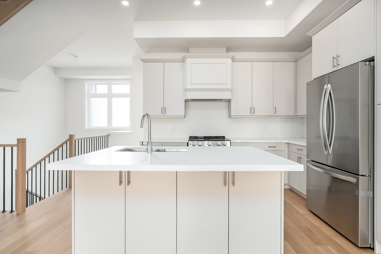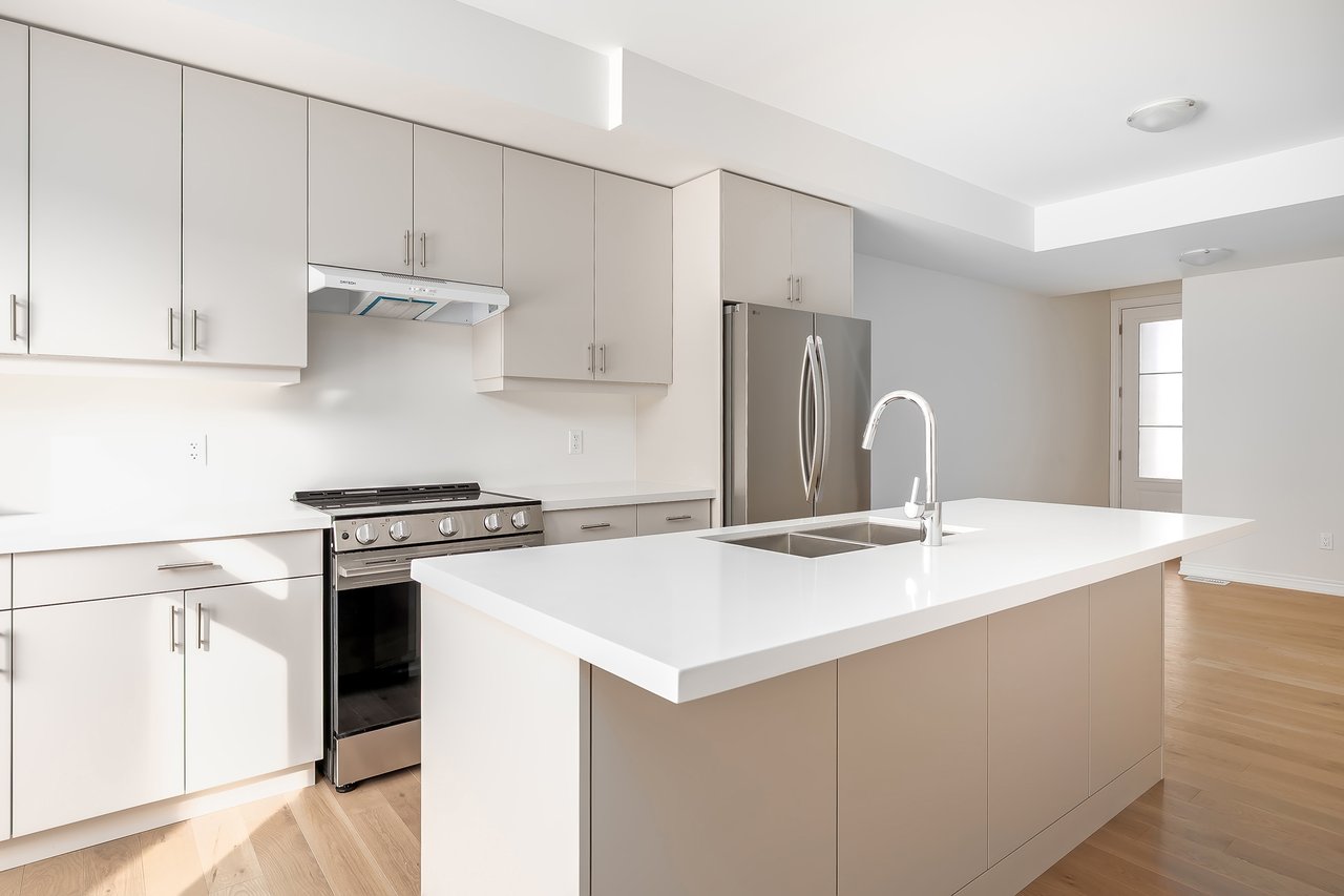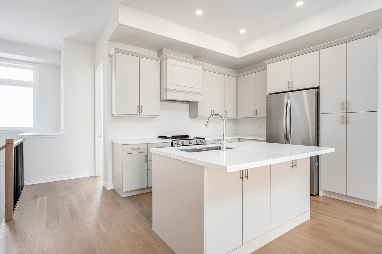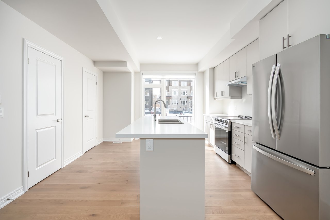 For Lease. Inviting urban freehold townhome in the central hub of upper Oakville. This growing community offers a blend of established amenities with the energy of new development. This is a brand- new executive townhome offering approximately 2005sqft of thoughtfully designed living space across the second + third floors of a duplex. This unit is 3 beds, 1 den and 2.5 baths. With expansive ceiling heights + windows this unit is exceptionally bright. It also offers an impressive front terrace, rear terrace + two balconies, giving you ample outdoor space without the upkeep. The main level is the hub with gourmet kitchen with modern sleek cabinetry + stainless appliance package + oversized island with bar seating – an ideal spot to gather. Open to the dining and family room with cozy milled fireplace + rear terrace. An adjacent power room is highly functional. The den space can be used an extra bedroom or private office. The upper level offers 3 bedrooms, a full bathroom + laundry. The primary features generous walk-in, luxurious bath with soaker tub + sleeping quarters with balcony. Nicely upgraded throughout with white oak flooring + quartz counters. Dedicated AC, furnace, hot water tank + oversized storage. Double garage + one surface parking. Close to excellent schools, scenic parks + local shopping and easy access to key commuter routes. Brand new with quality finishes throughout + abundant natural light in a well-established and amenity-rich neighbourhood make this an excellent home choice.