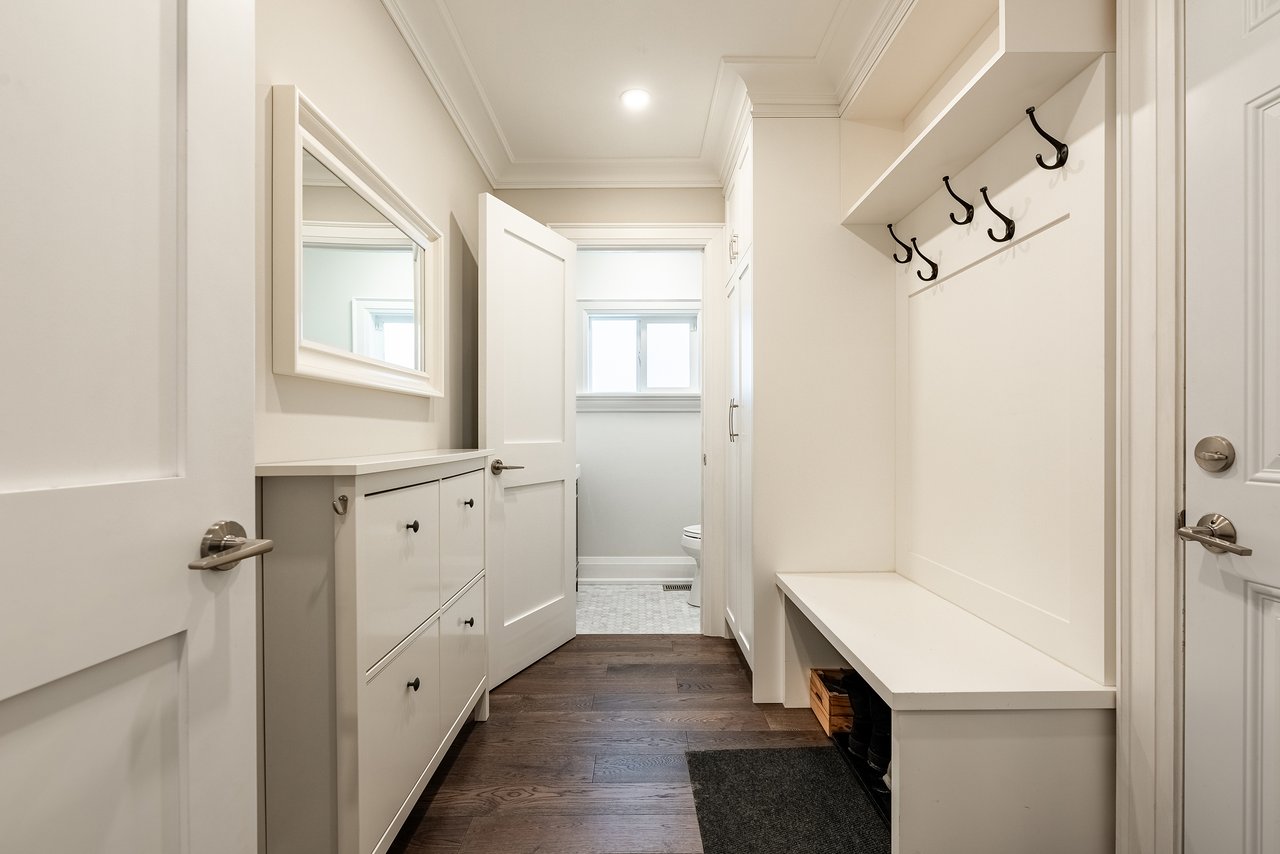 The main floor balances traditional principal rooms with a modern, open-concept layout where a beautiful kitchen serves as the natural gathering place. Designed with both style and utility in mind, the kitchen features quartz countertops, premium stainless steel appliances, custom cabinetry and a large central island. Enhanced with integrated Lutron lighting and automatic blinds throughout the first floor, this level also includes a formal dining room, a bright living room and a family room anchored by a gas fireplace. A functional mudroom offers direct access to the garage.