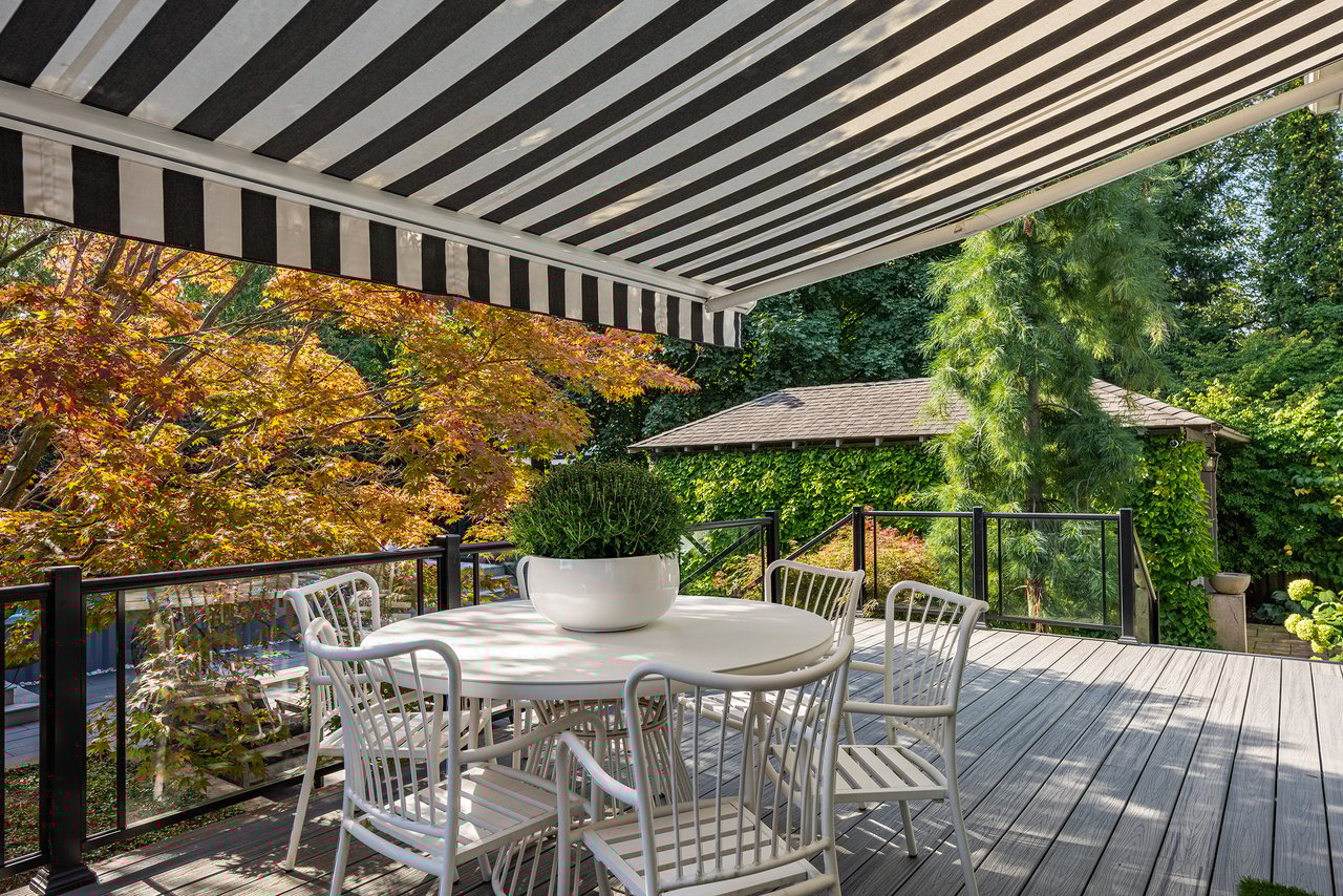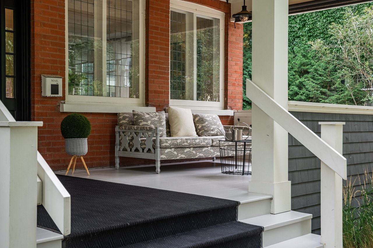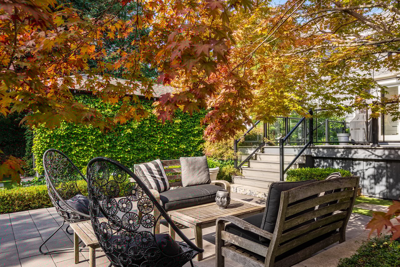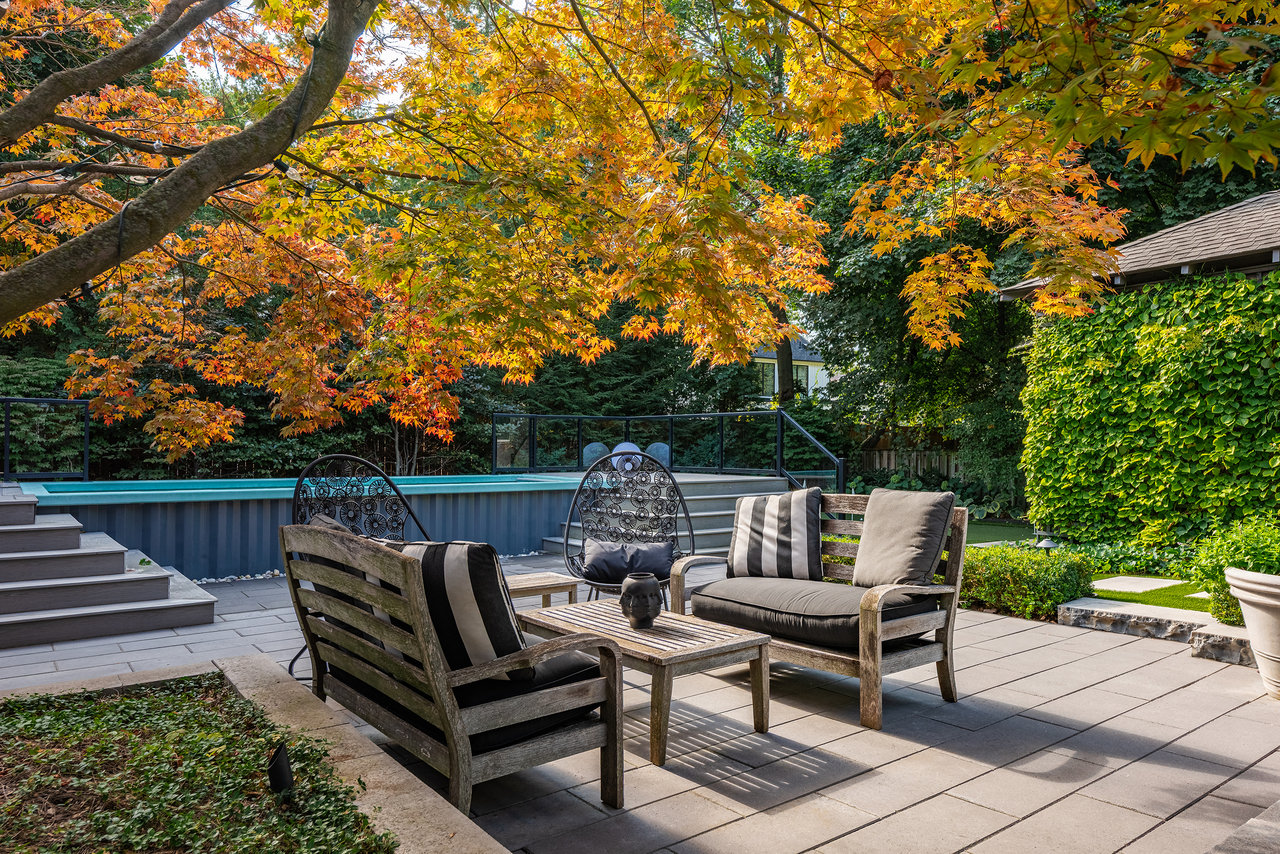 Outdoors, the home continues to impress. A double garage with high ceilings is a rarity in this area. The welcoming front porch is perhaps the epitome of Old Oakville charm, while the south facing backyard has been meticulously designed as a private retreat. A newer composite deck with glass railings overlooks a landscaped garden featuring a lap pool that doubles as a spa, a professionally installed putting green, and a stylish flex-cabin ideal as an art/yoga studio, office, or gym.