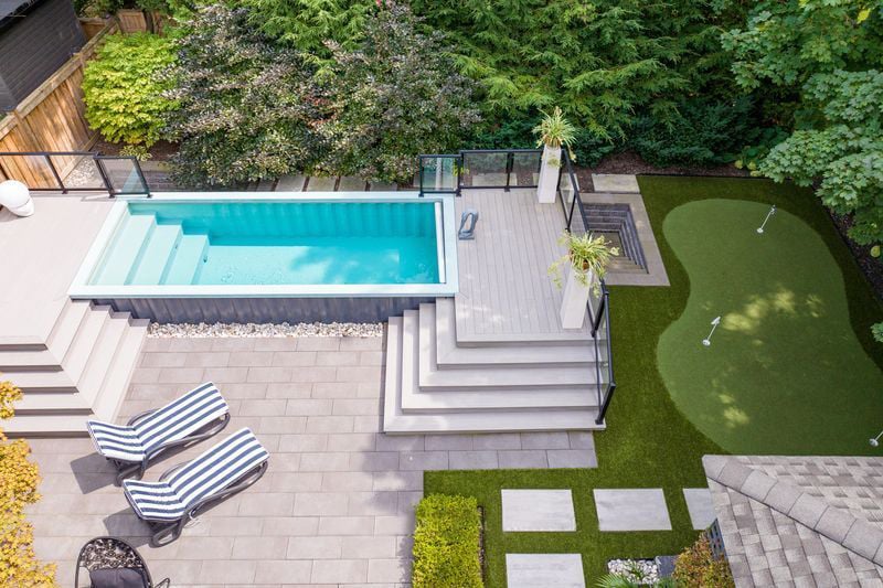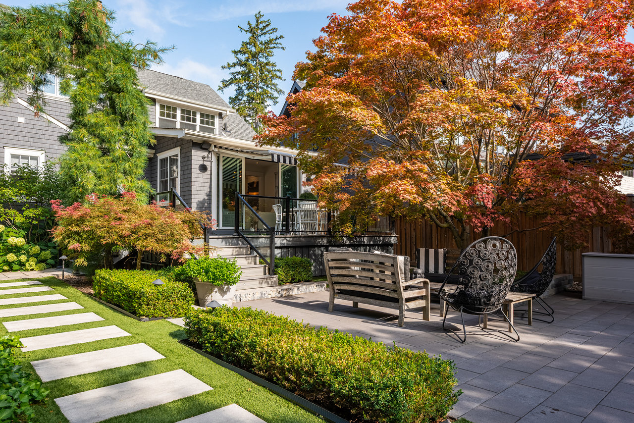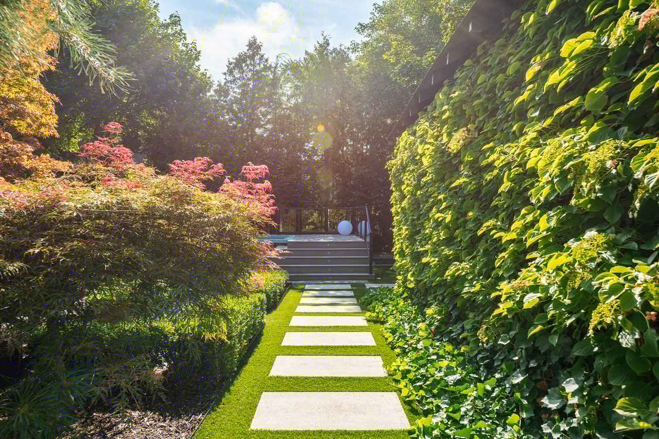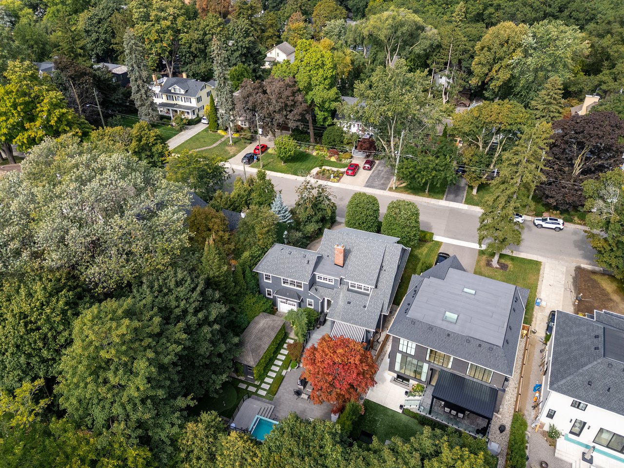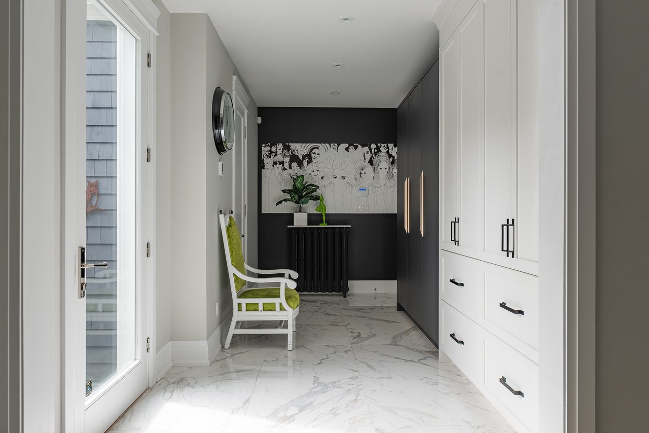 Outdoors, the home continues to impress. A double garage with high ceilings is a rarity in this area. The welcoming front porch is perhaps the epitome of Old Oakville charm, while the south facing backyard has been meticulously designed as a private retreat. A newer composite deck with glass railings overlooks a landscaped garden featuring a lap pool that doubles as a spa, a professionally installed putting green, and a stylish flex-cabin ideal as an art/yoga studio, office, or gym.