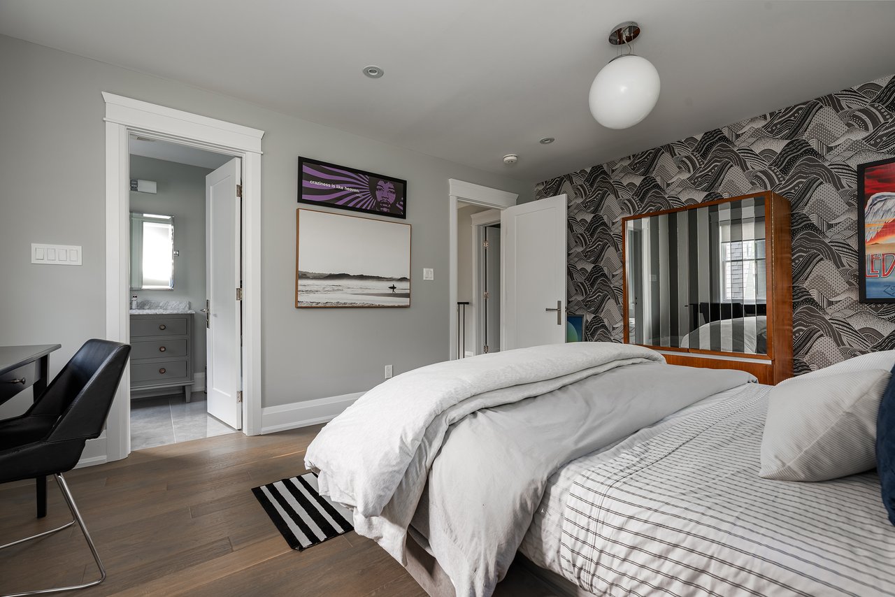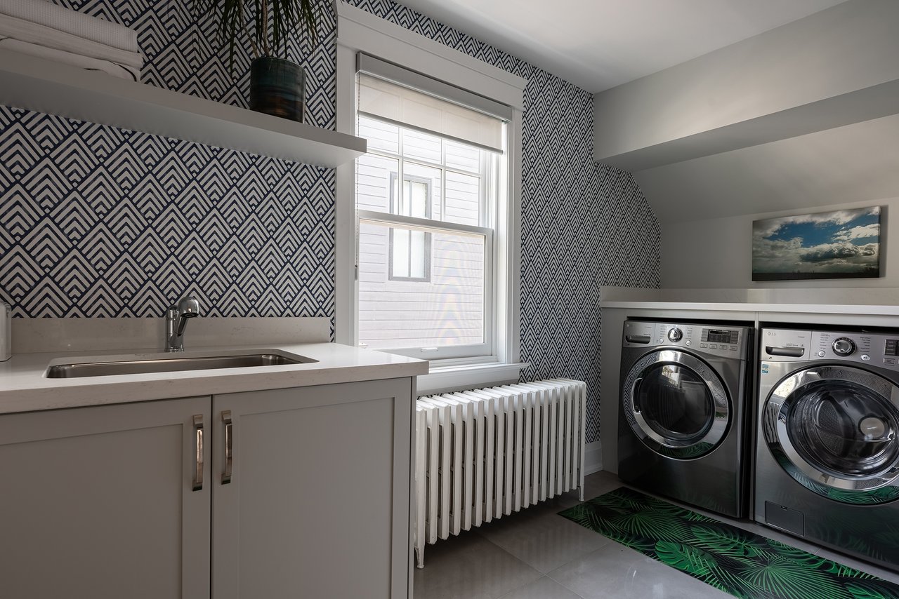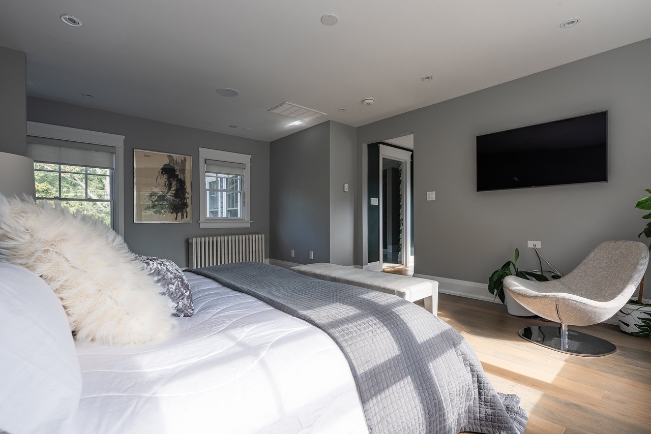 Upstairs, three spacious bedrooms each enjoy their own modern ensuite w heated floors. The primary suite features an impressively large walk-in closet and spa-like bathroom. The third-floor loft, filled with light, is a flexible space that could serve as a fourth bedroom, a private office, or the ultimate hangout for teens. Thoughtful details, such as upper-level laundry, bring modern convenience to a historical setting. The finished lower level adds further versatility with newer carpeting, excellent storage, and space for recreation.