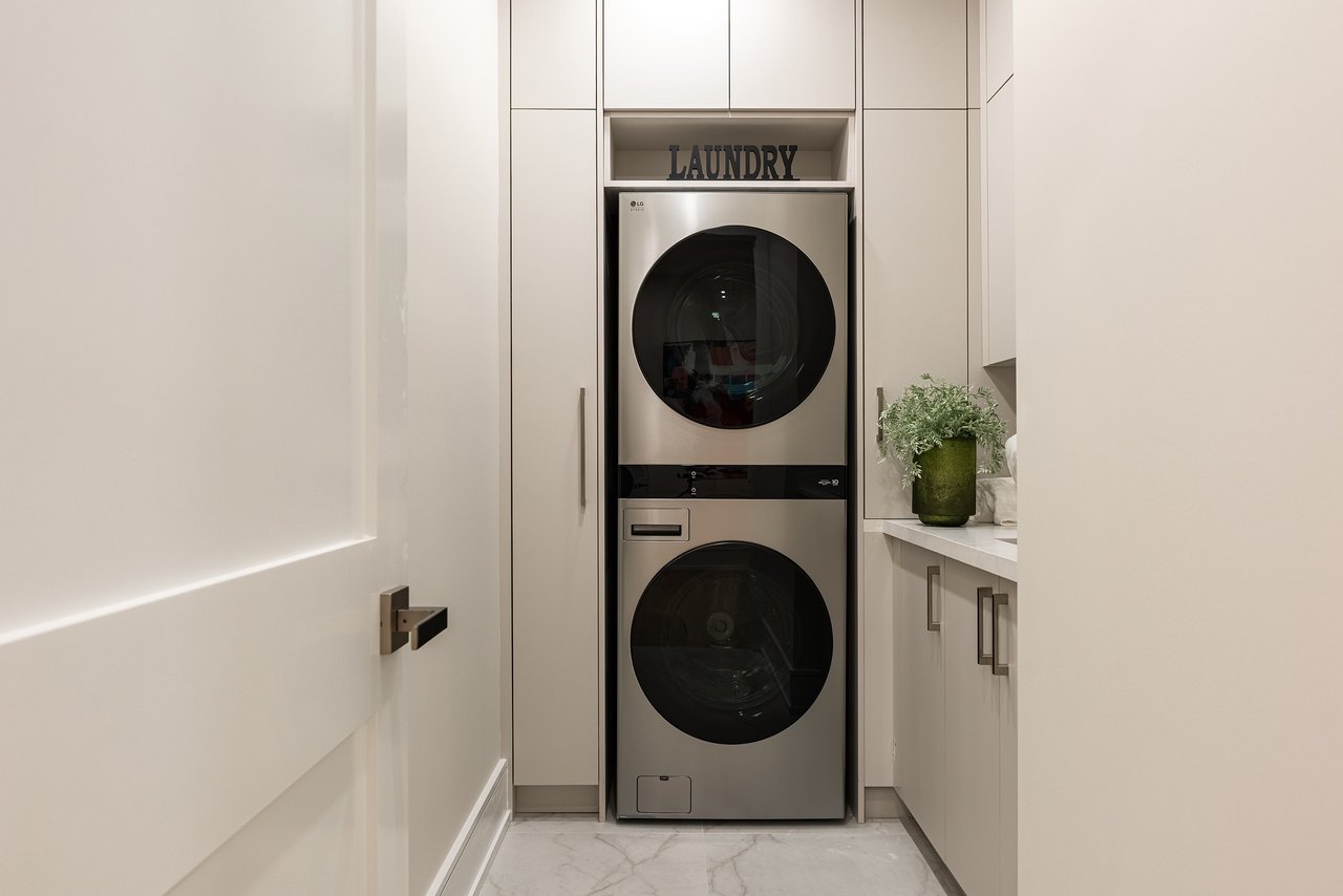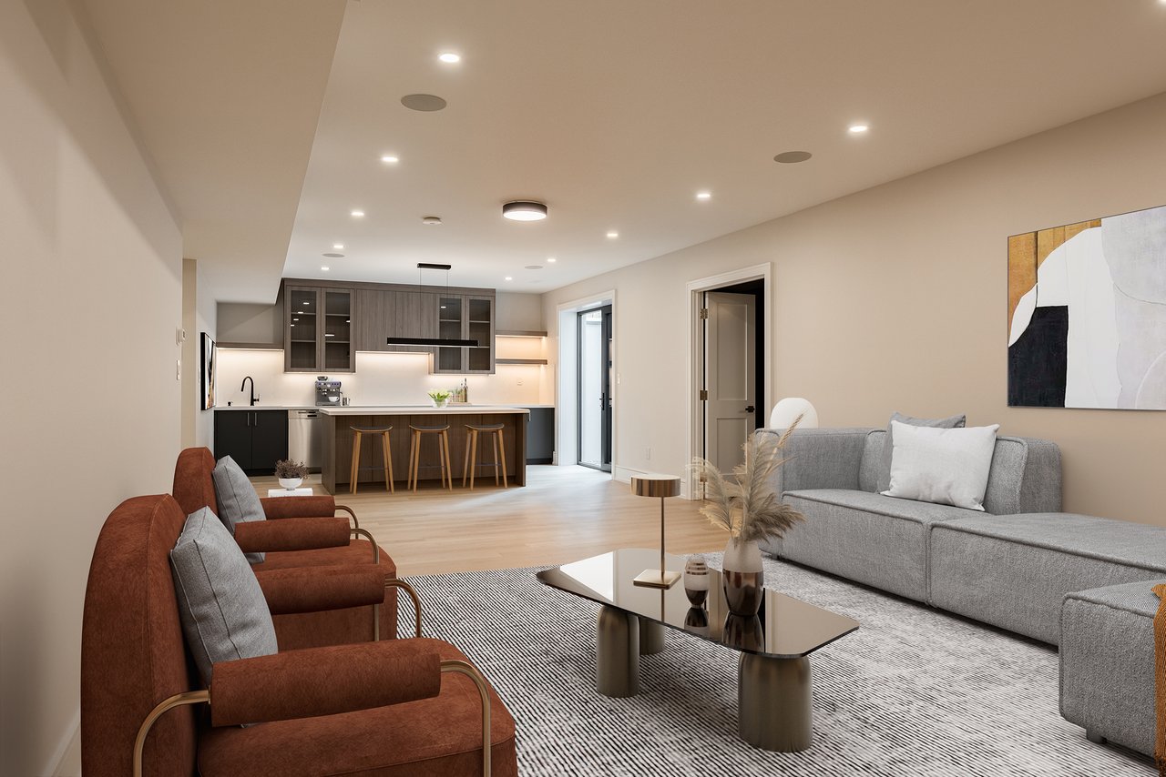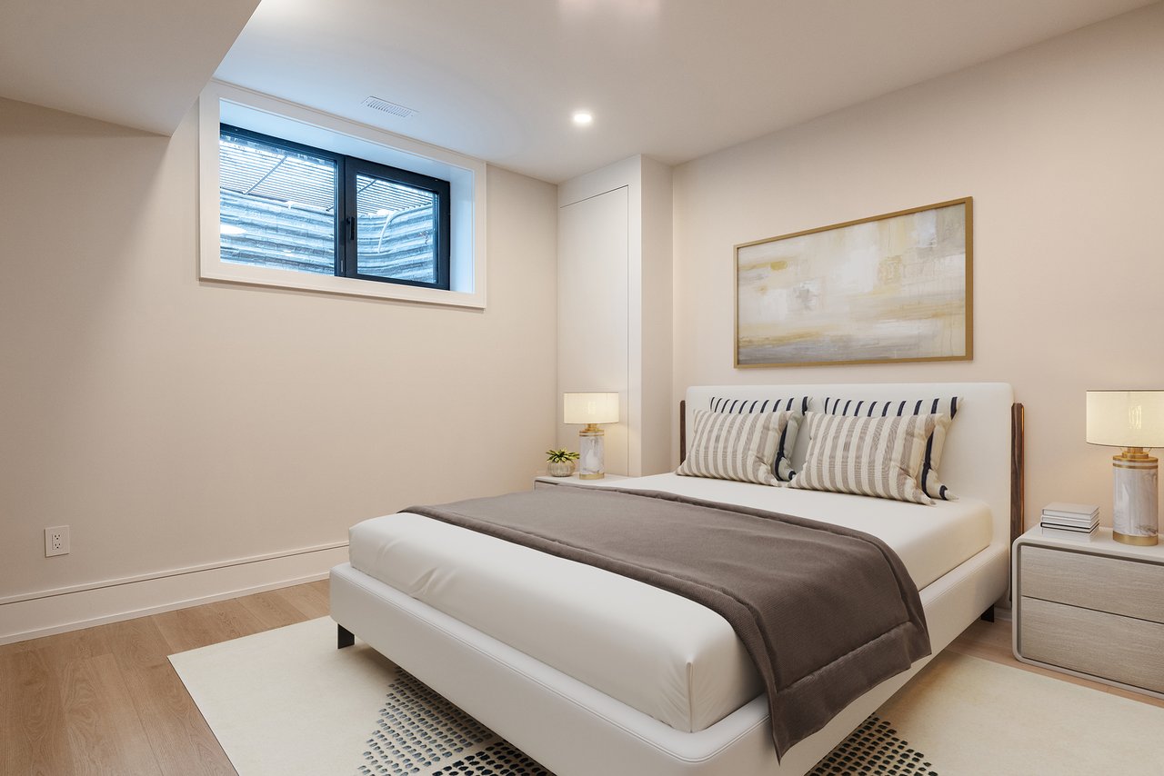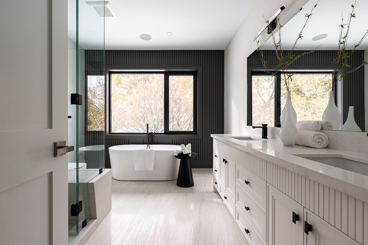 Upstairs, four spacious bedrooms each feature private ensuites. The primary suite is a serene retreat with a modern feature wall, terrace walkout, and spa-inspired bath with Mirolin soaker tub, rain and wand shower, and custom double vanity.