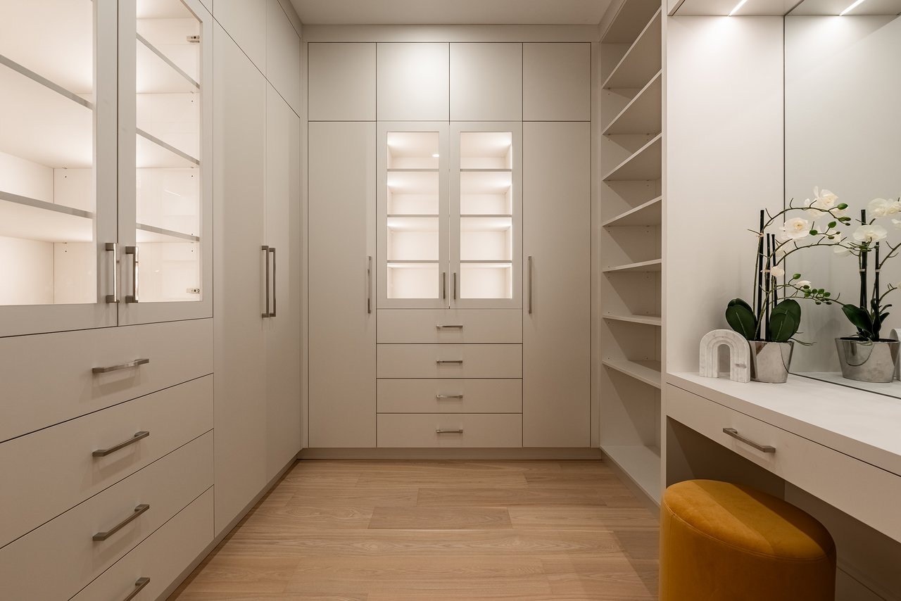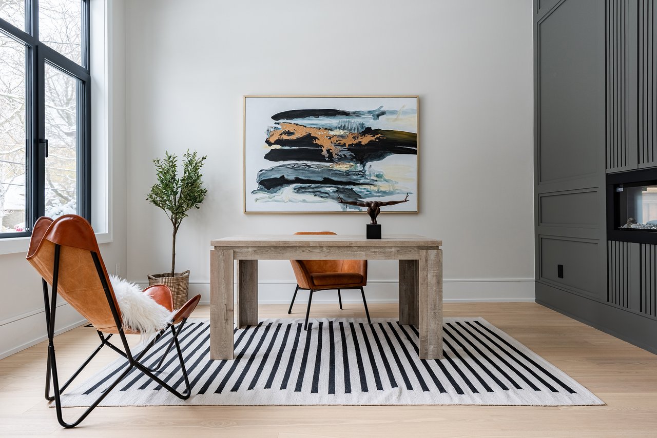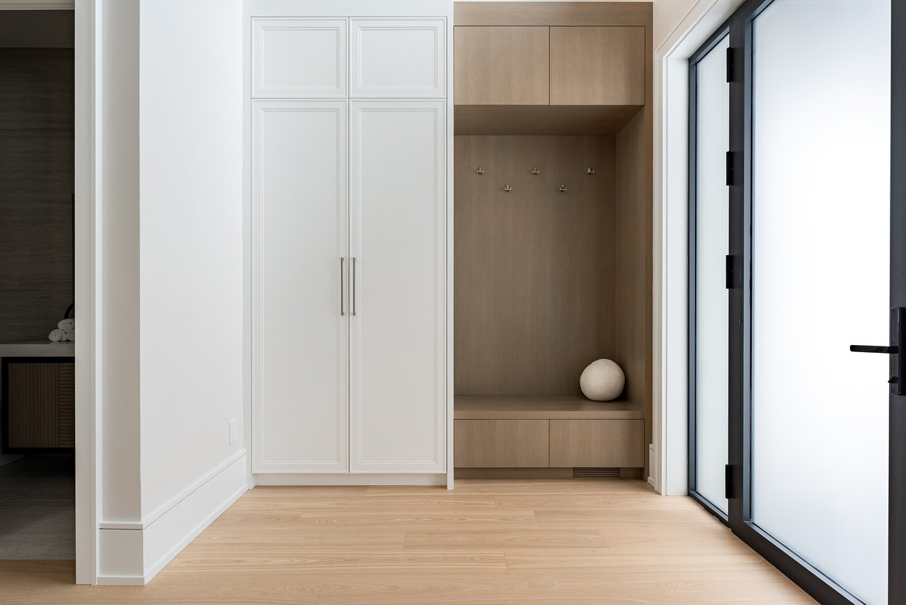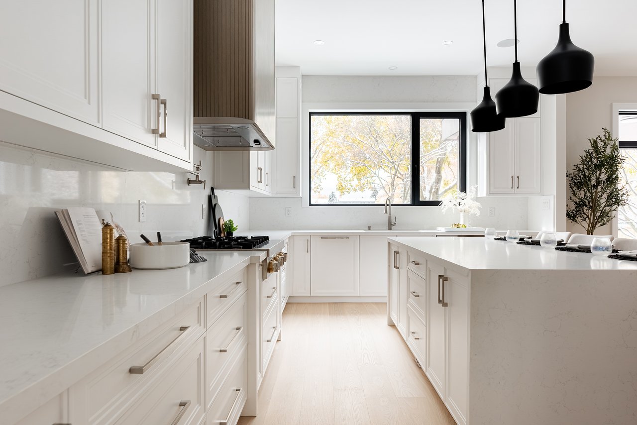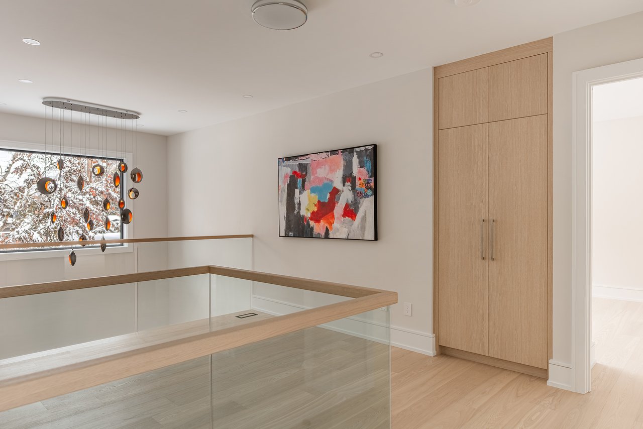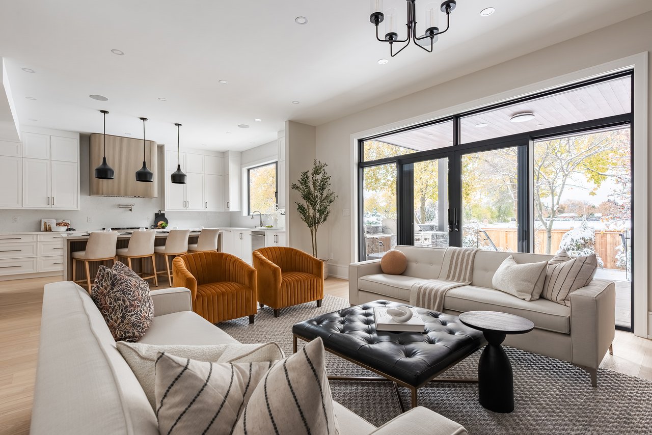 A covered entry leads into a dramatic two-storey foyer with 20-foot ceiling height, setting the tone for a home defined by light, proportion, and fine detailing. Ten-foot main-floor ceilings, 10-inch baseboards, wide-plank engineered flooring, triple pane energy star aluminum windows and integrated in-ceiling speakers bring cohesion to the open-concept design.