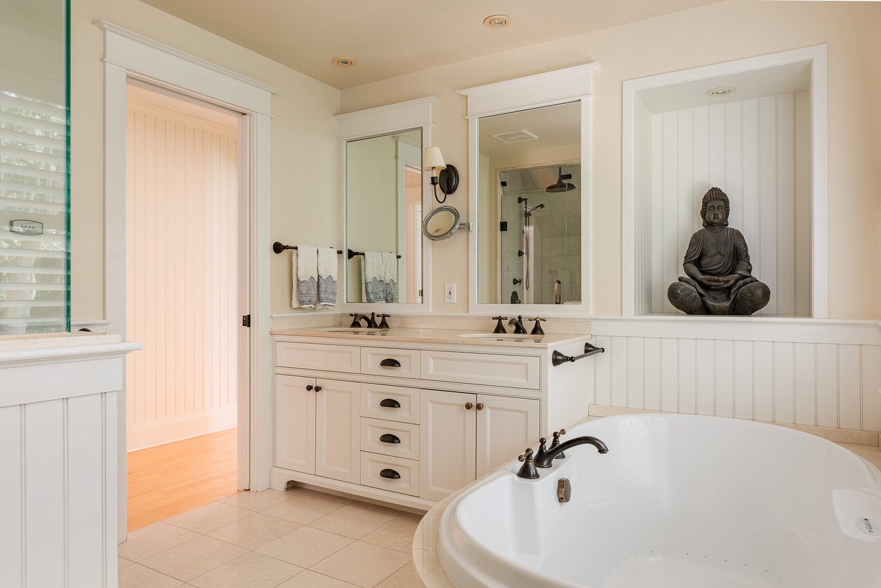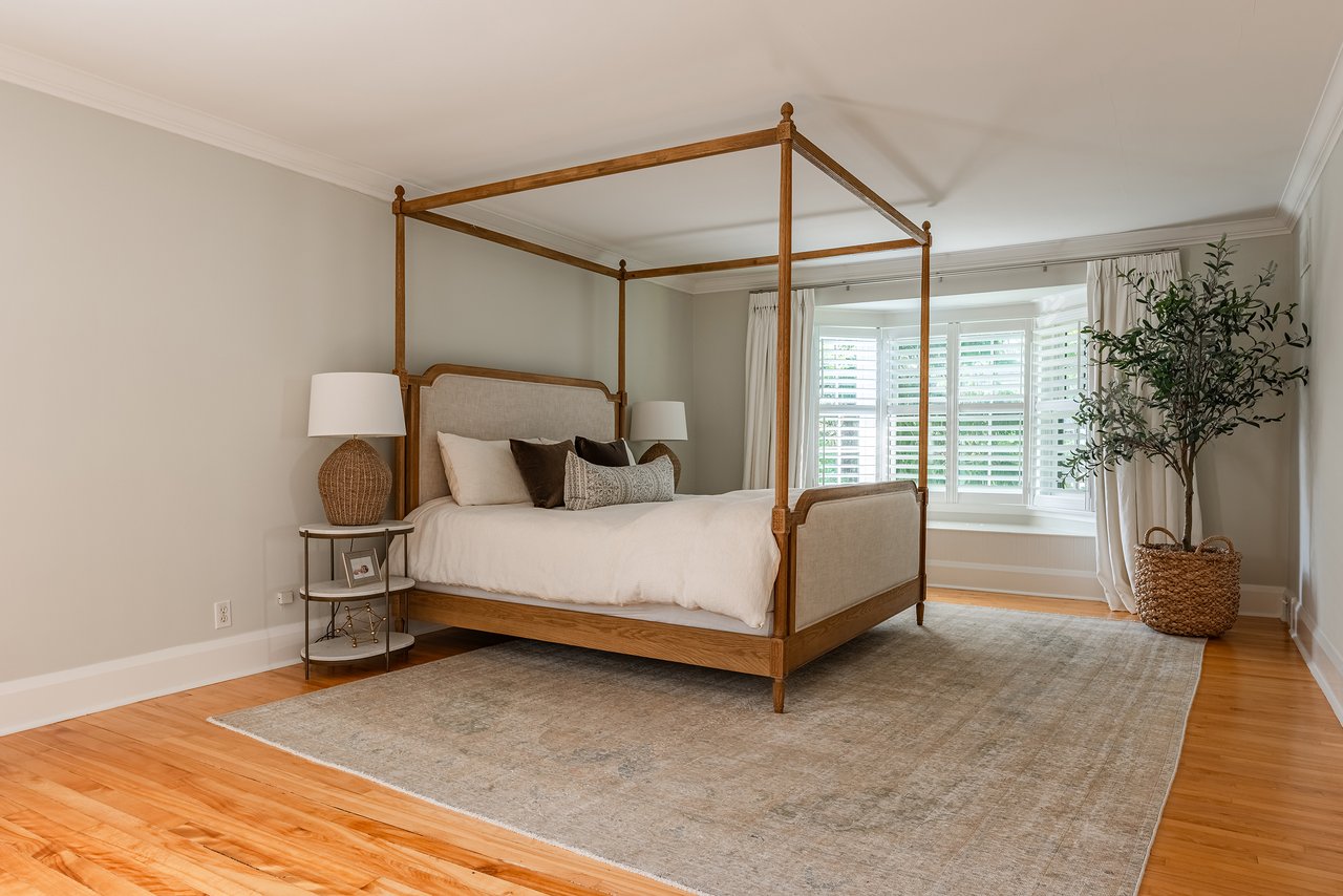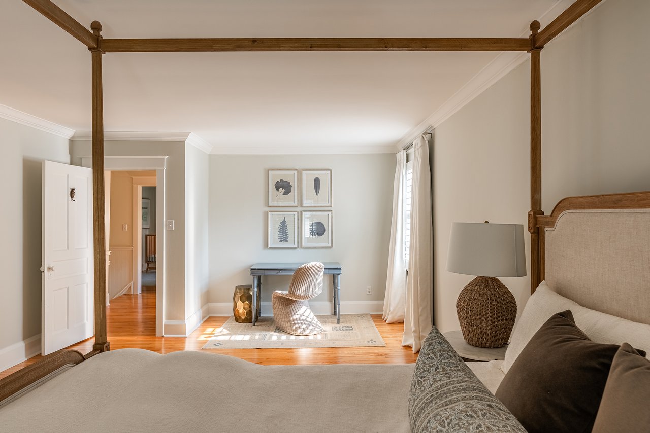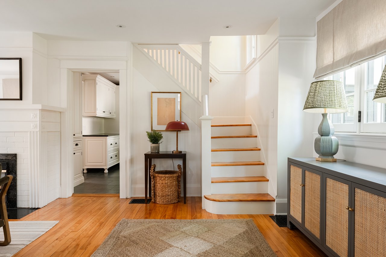 Upstairs, the primary suite stands out with an unusually generous footprint for a home of this era, featuring a walk-in dressing room and an expansive ensuite with soaker tub. Two equally sized bedrooms share a spacious children’s bath, designed to keep up with the busiest of mornings.