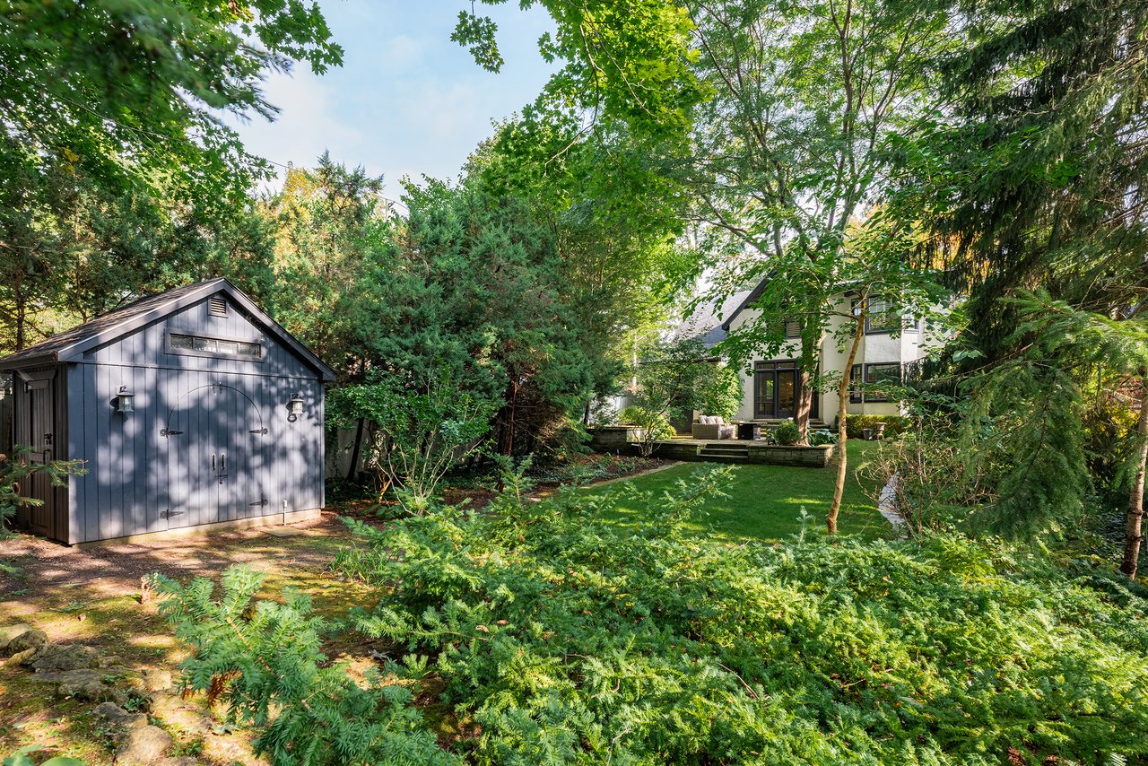 The lower level is true to its period, awaiting your vision for renovation or offering plenty of storage. Outside, a semi-circular drive means no need to jostle cars, while a newer single-car garage with high ceilings and a dedicated storage room adds rare convenience. At the rear, a newer sizeable potting shed with full electrical offers endless possibilities, from hobby space to creative studio.