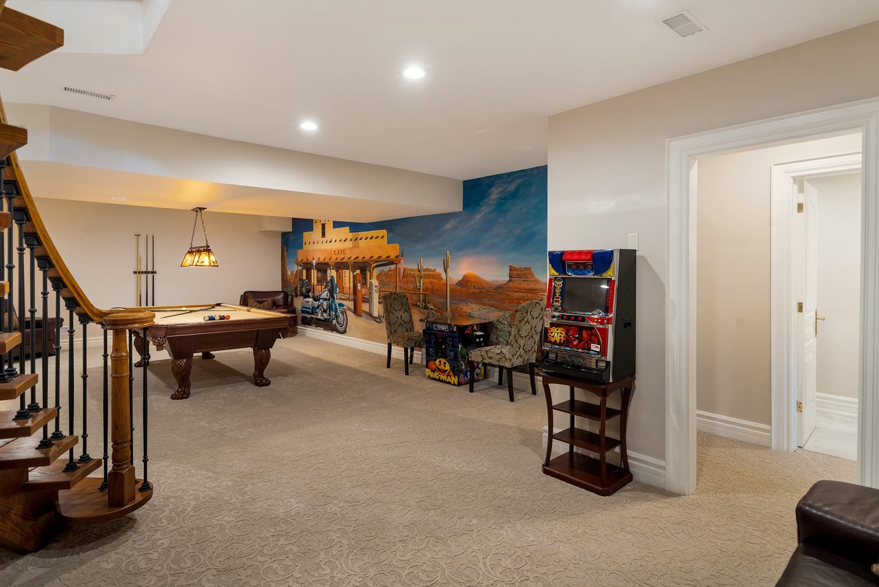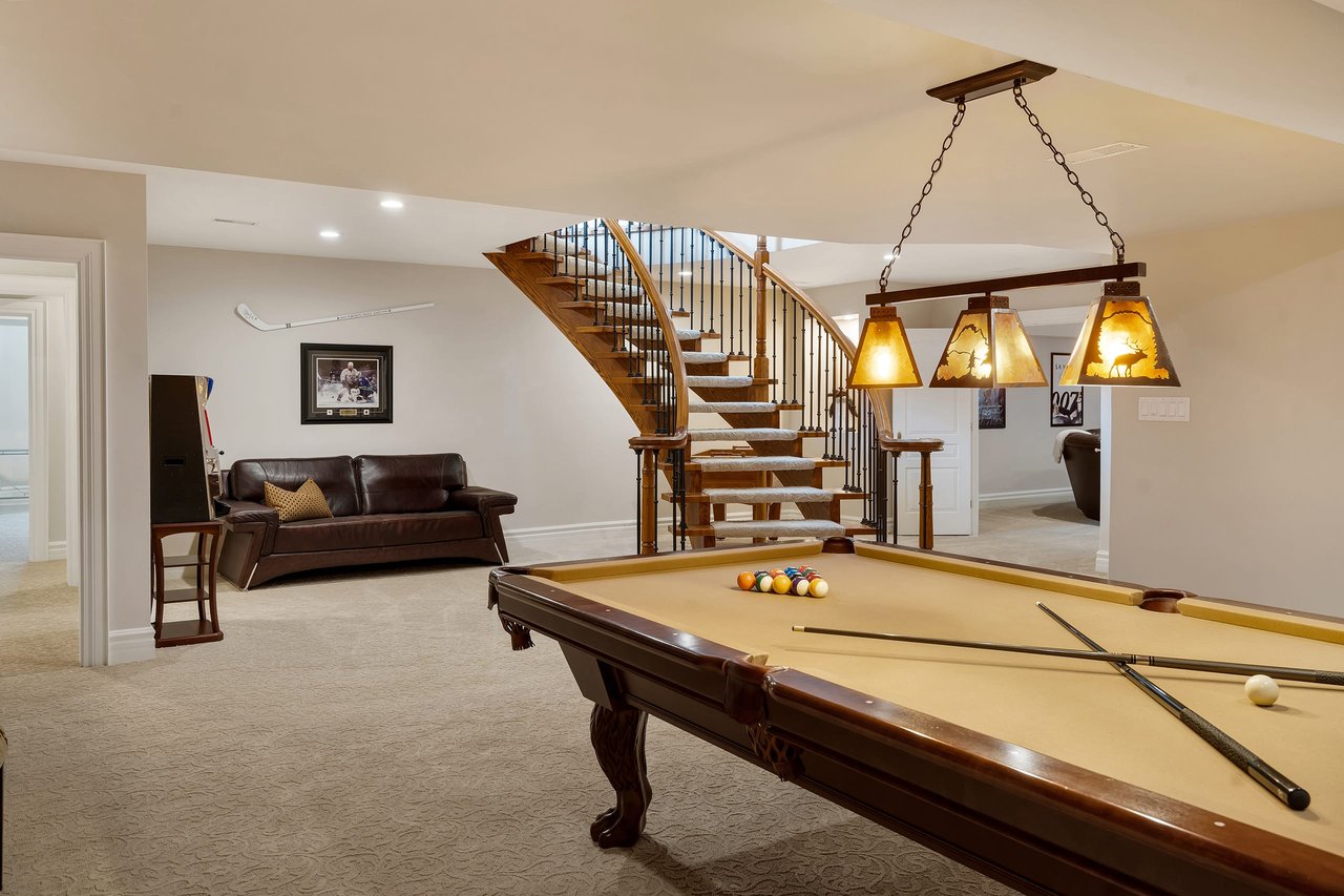 Luxurious finishes are carried through to the expansive lower level. Fun games room, a cozy media room, two additional beds, gym and 1.5 baths – there is ample space for a large family.