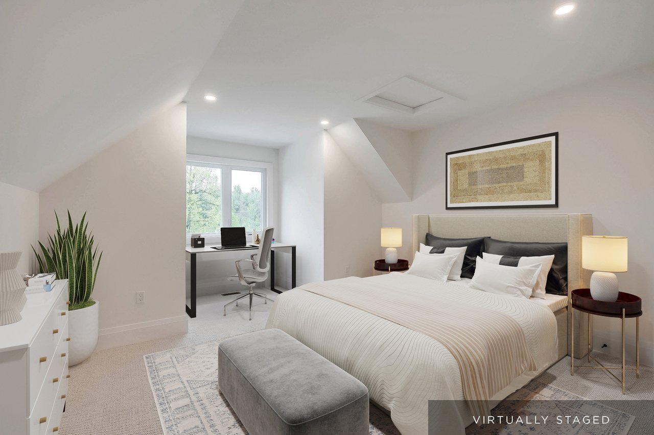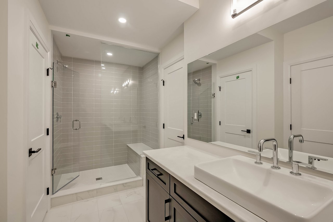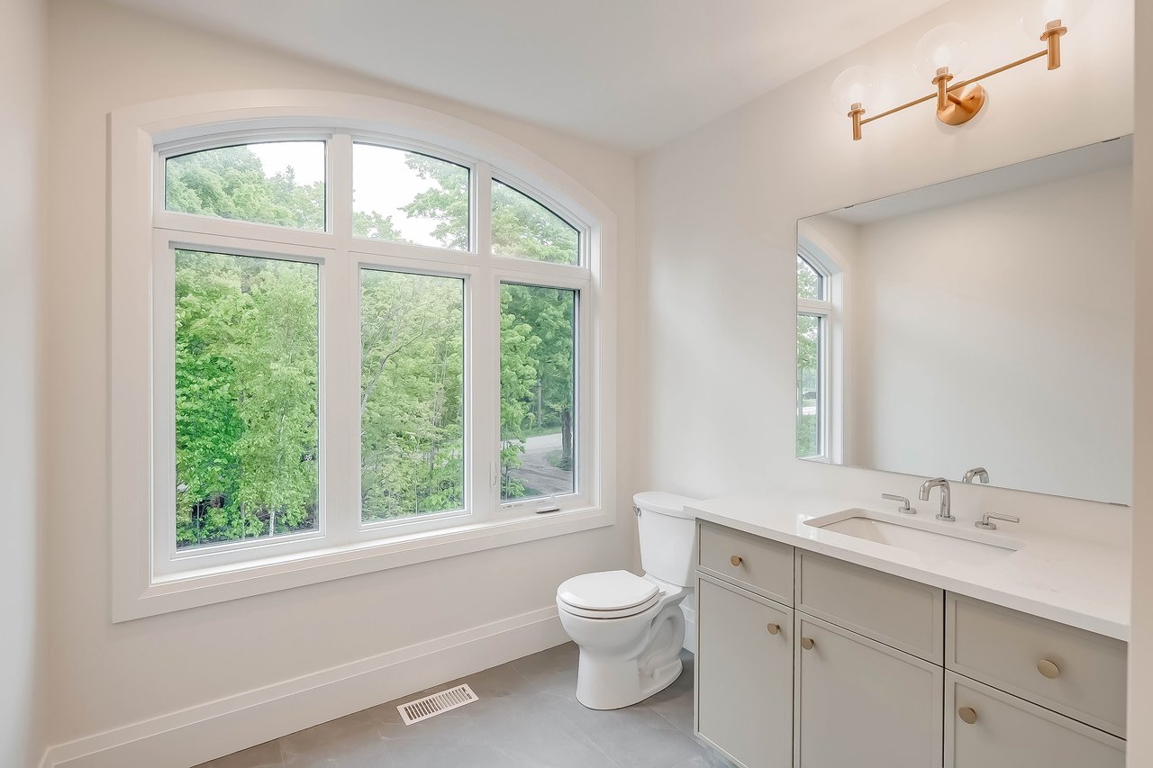With double door entry, impressive vaulted ceiling + expansive glazing, the primary bedroom is bright + spacious. With a generous walk-in closet and luxurious ensuite with a deep soaker tub, oversized glass shower + water closet, this is a serene place to unwind after a long day. Two additional bedrooms are generously sized with ample storage, extensive glazing + each enjoy private ensuites. Convenient laundry rounds out this level. The lower level offers a finished space with fourth bedroom with walk-in + luxurious ensuite. The remainder is unspoiled with ample windows, additional 2-piece rough-in + high ceilings.