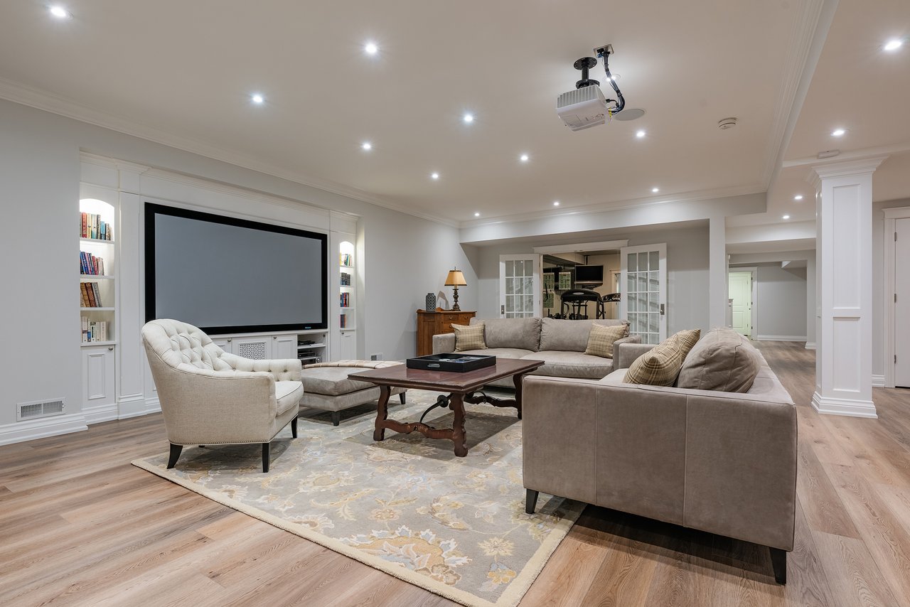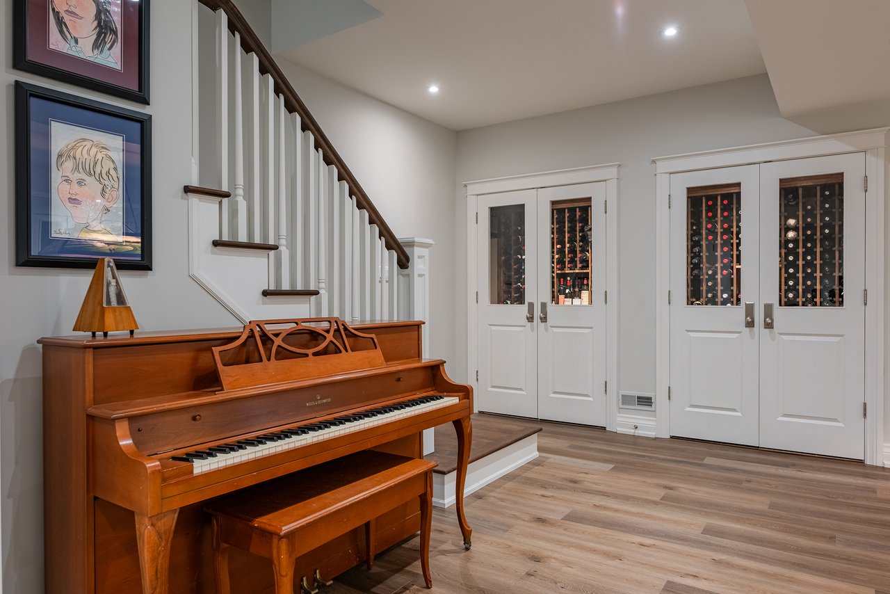 The lower level extends the living space with a wine cellar, recreation room, gym, and powder room - creating the perfect environment for relaxation, fitness, and entertaining alike.