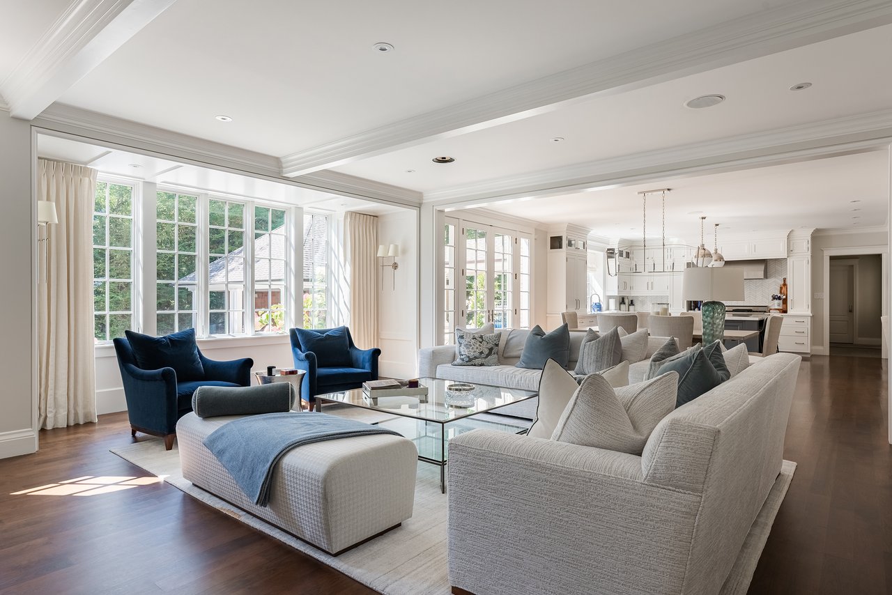 From the moment you arrive, the home’s presence is unmistakable. A welcoming front entry leads to an expansive floor plan thoughtfully designed for both family living and entertaining. Generously scaled principal rooms include a formal living room with fireplace, a sophisticated dining room, a private main floor office, and a sun-filled family room that seamlessly connects to the kitchen, servery, and breakfast area. Throughout the home, large windows and multiple walkouts ensure abundant natural light and effortless indoor-outdoor flow.